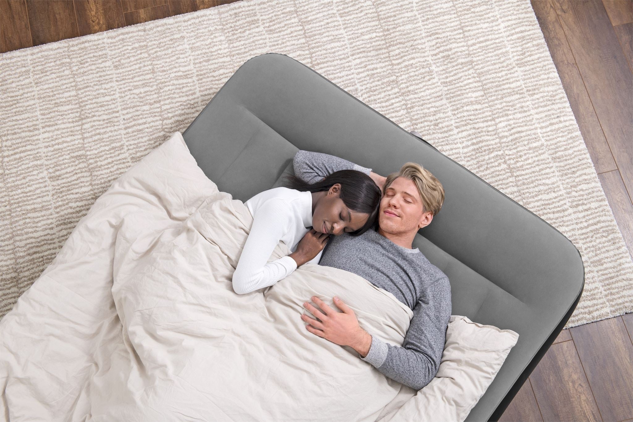 The built-in AC air pump inflates the mattress in 4 minutes, so it is ready for bed when you are. In the morning, the quick deflate valve allows for easy takedown.