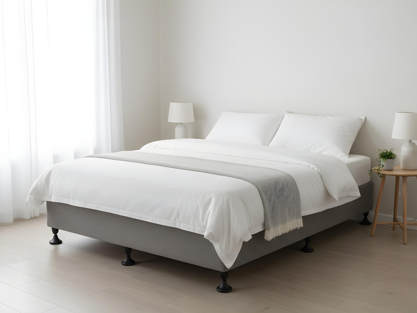 Double Bed Base | Grey Linen Fabric Cover | Easy Assembly