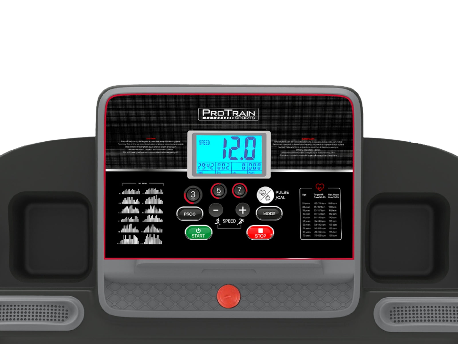 A truly effective machine to help you lose some kilos as well as perform essential cardio exercises, the Protrain Treadmill is designed to simulate natural terrain as you do your runs or walks. You get total realism in feel and impact, not to mention the great workout that you are having. Operating the Treadmill is totally effortless with up to 12 pre-set training programs to choose via the user-centric and brightly lid LCD display.