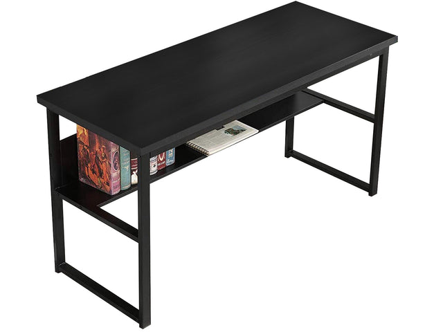 With its clean and simple profile, our Coelsh Computer Desk is all about practicality with minimum fuss. Made from steady powder coating steel base and particle board with a smooth melamine finish, the wide table top provides ample work space. Underneath the top lays an extra book shelf which is perfect for work-related essentials or daily stationery to keep your things well organized and your desktop clean and tidy. Roomy and bold with a modern design, our Coelsh Computer Desk will blend well with any setting with its black wood top and black frame.