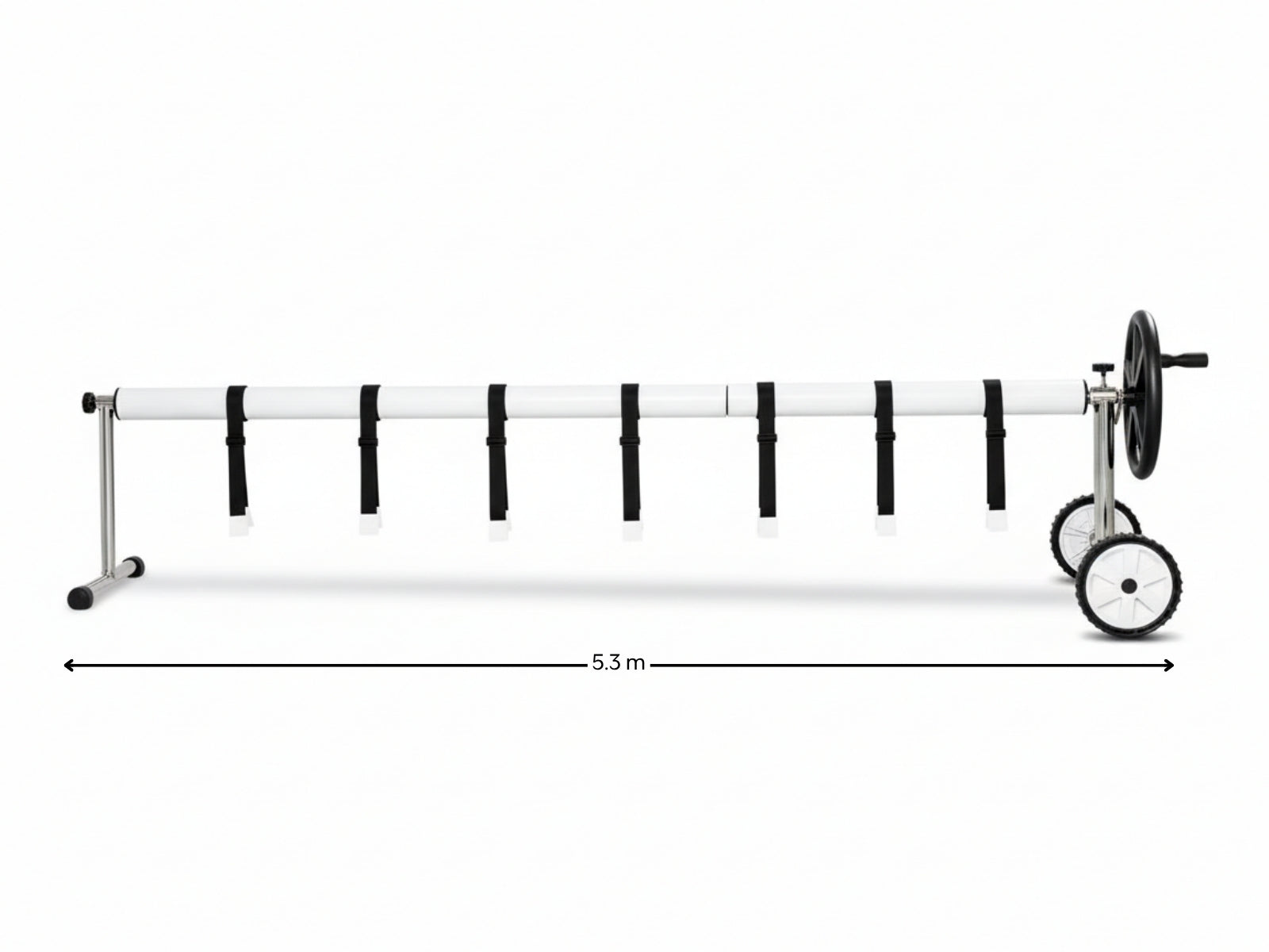 This convenient in-ground pool cover with a non-slip handle makes it easy to roll away and store your pool cover easily. Constructed of adjustable aluminum tubing and stainless steel hardware it features a maximum width of 5.3 meters. Equipped with premium stainless steel with plastic wheels for maximum portability and convenience. With 8 blanket clips for even drag and heavy-duty straps to help attach the pool cover to the roller and high-traction plastic wheels, this pool cover roller is perfect for single-person use. Relax this summer, this pool cover will keep the pool clean at all times with little effort.