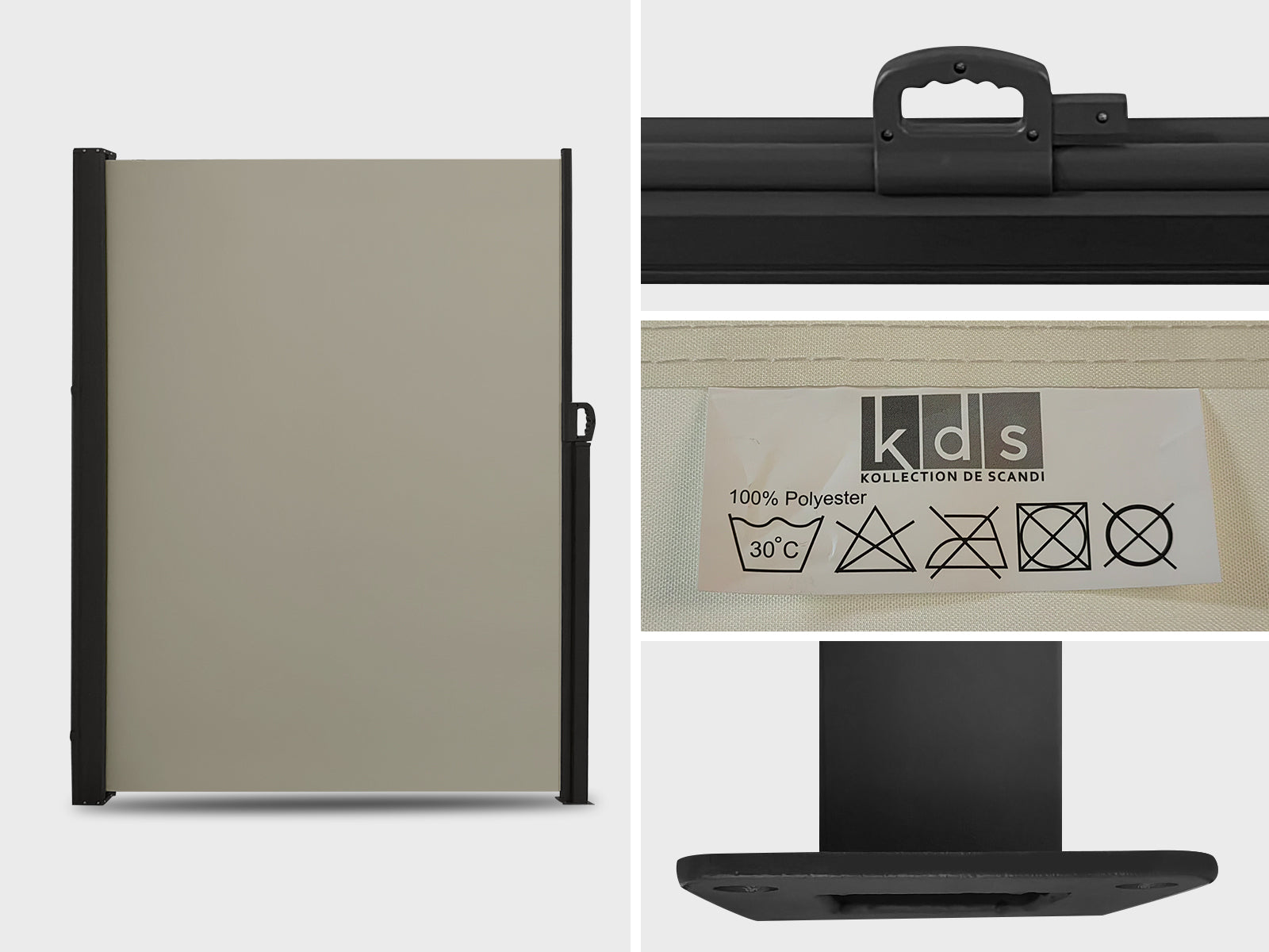 Made from UV-resistant and water-resistant fabric with power powder-coated frame. The cassette is installed on the wall in the vertical position, and the retractable awning is pulled straight out from the wall. The width of the awing is adjustable up to 300cm.