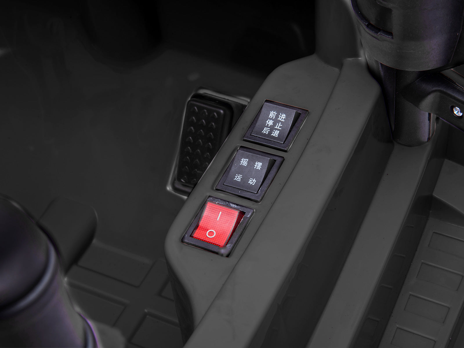 Despite the serious looking exterior this vehicle is simple to control, and boasts an array of features for maximum fun including Digital Sound system with MP3 Input, a sensible 3-6km/h speed range, forward and reverse motion, lights and a horn.