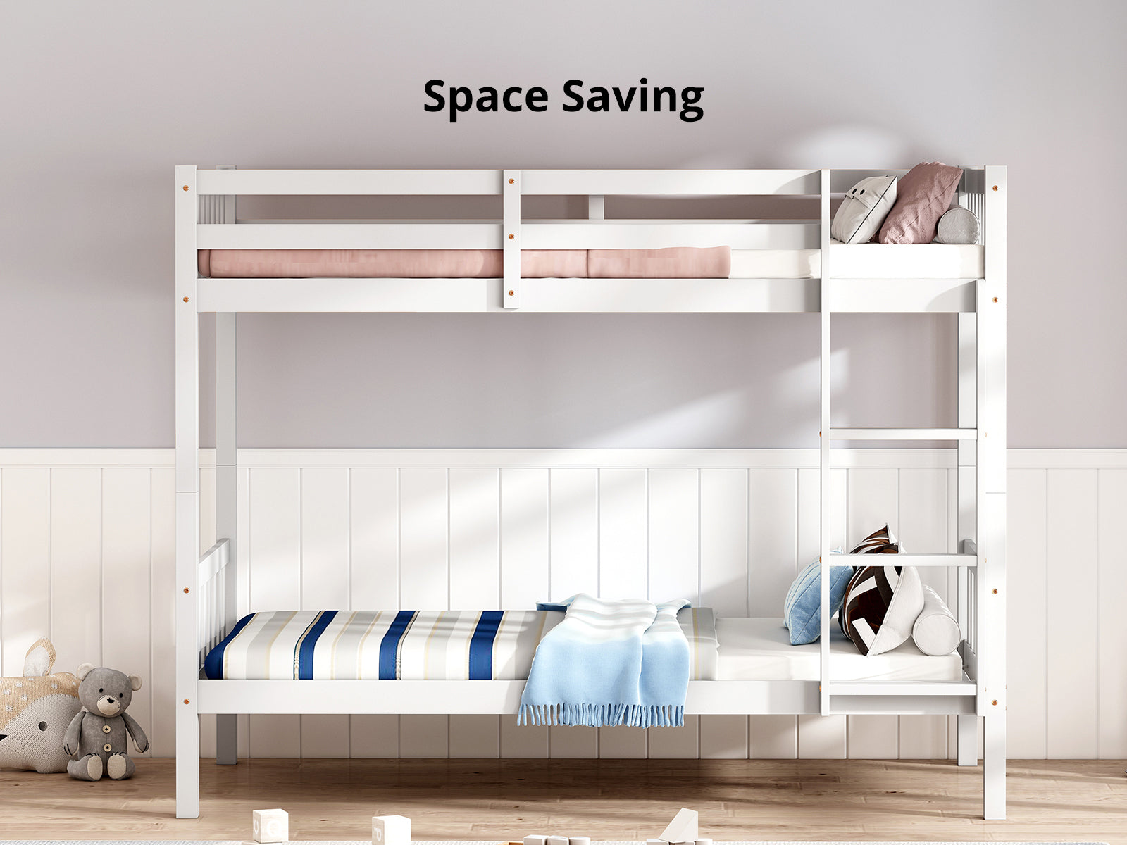 Our new Lydia bunk bed is perfectly suitable for any style of bedroom with its modern and contemporary design. Made of pine wood, it is sturdy and long-lasting. With an elegant structure, and the attached ladder, it is easy to climb up to the upper level. Furthermore, there is a guardrail on the upper level for safety in case children fall down. Surely children will have a good sleep in the bunk bed.