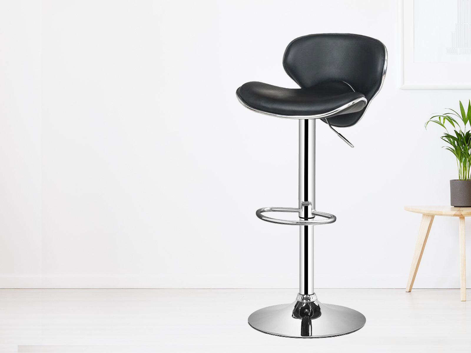 Incorporating a quality chrome base with a PU leather padded seat providing maximum comfort.