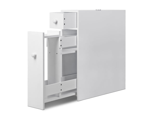 Bathroom Cabinet | White Finish | Slim Design with Pull-Out Drawers