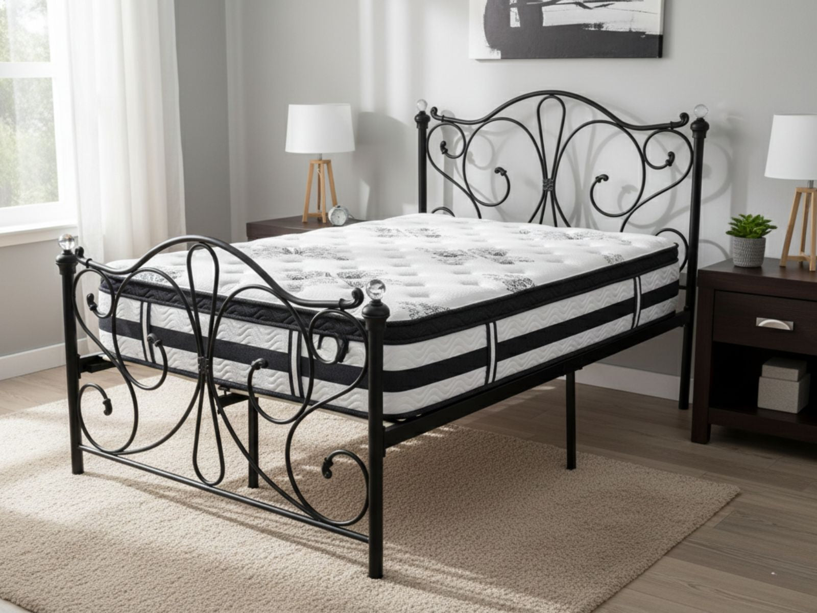 Elizabeth Bed Frame Black & Euro Top Mattress K34 – Double (Combo)
