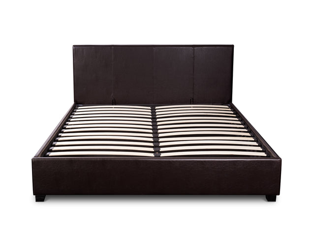 1 x Bass Storage Bed Frame PU Dark Brown Queen (flat-packed in 2 boxes)