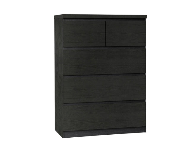 1 x Tiko 5-Drawer Tallboy Black Oak (flat-packed in 2 boxes)