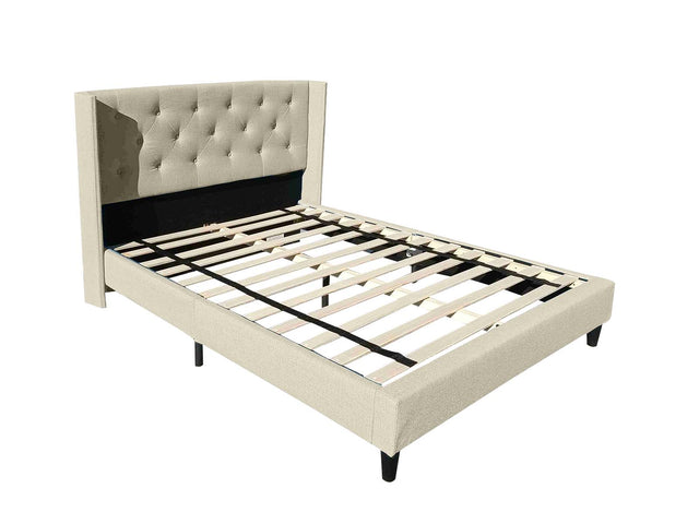 Double Bed Frame | Beige Linen Upholstered | Modern Design with 5 Color Options