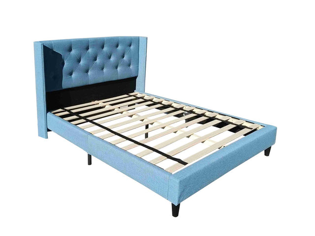 Double Bed Frame | Blue Linen Upholstered | Modern Design with 5 Color Options