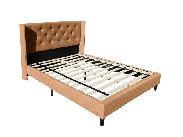 Double Bed Frame | Brown Linen Upholstered | Modern Design with 5 Color Options
