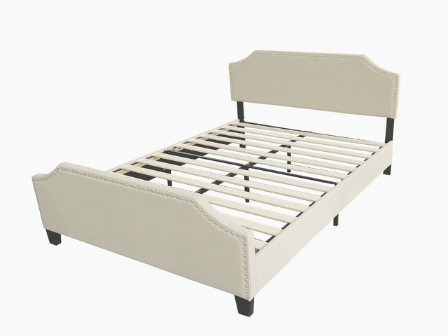 Double Bed Frame | Beige Linen Upholstery | Adjustiable Headboard