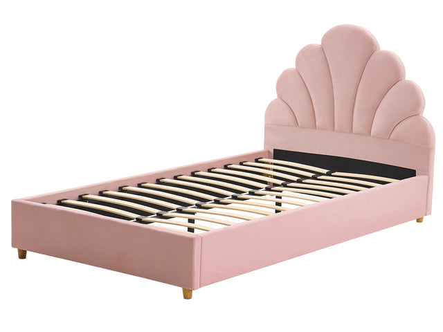 King Single Bed Frame | Pink Velvet Upholstery | Shell-like Silhouette Headboard