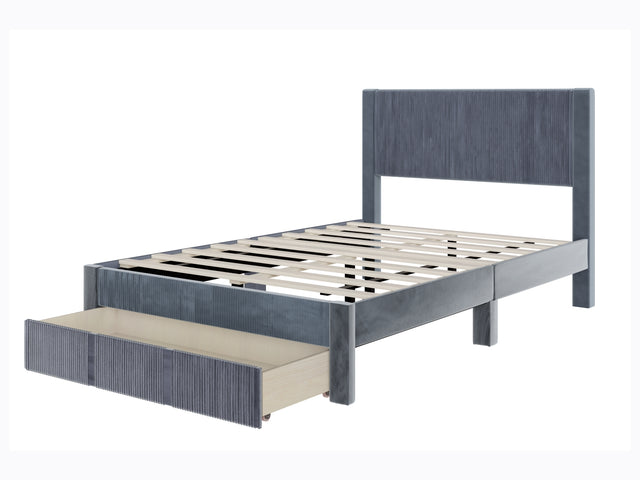 Double Bed Frame | Charcoal Velvet Fabric | Bed with Storage Drawer