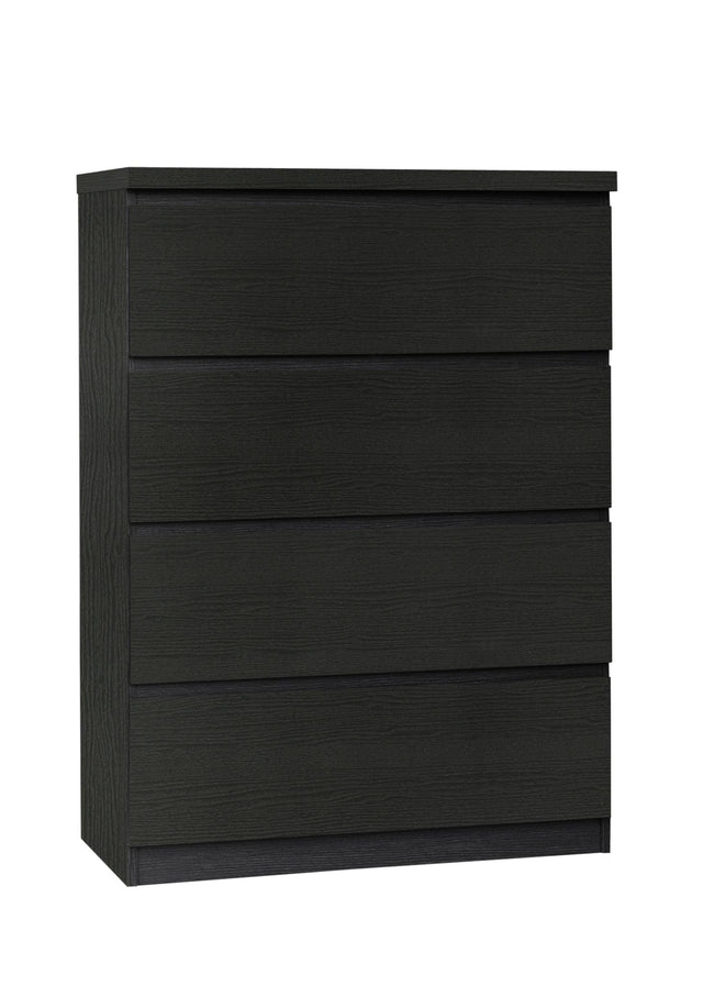 1 x Tiko 4-Drawer Tallboy Black Oak (flat-packed in 2 boxes)