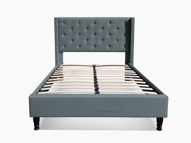 Double Bed Frame | Blue Linen Upholstery | Elegant High Tufted Headboard