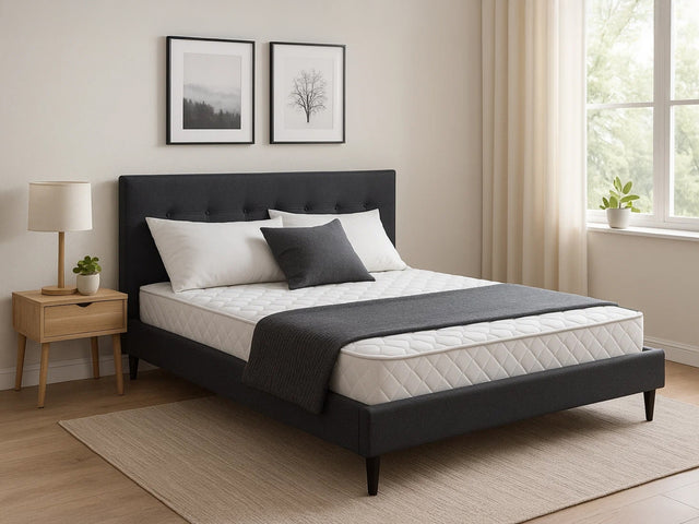 Queen Bed Combo | Grey Linen Frame & Soft Medium Mattress | Stylish & Affordable Set