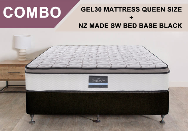 NZ Made SW Bed Base Black with Gel30 Mattress Combo - Queen