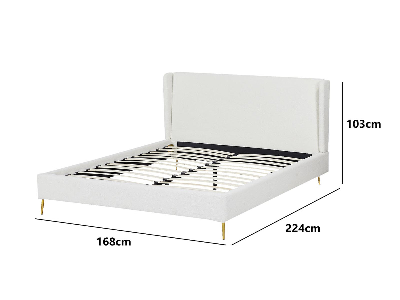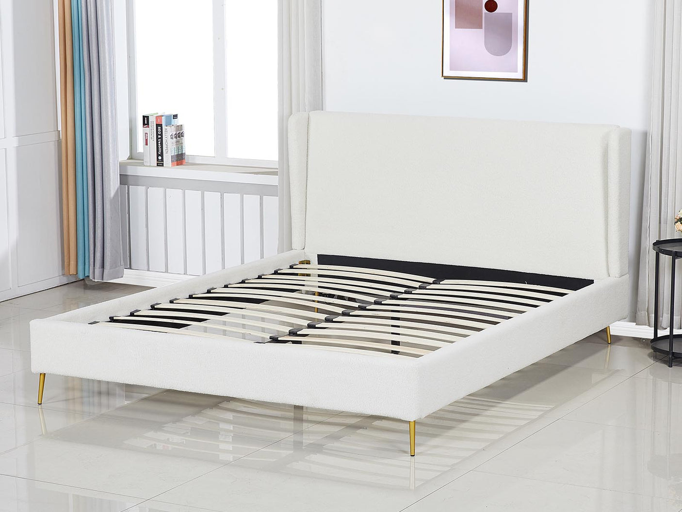 Queen Bed Frame | White Bouclé Upholstery | Heavy-Duty Construction