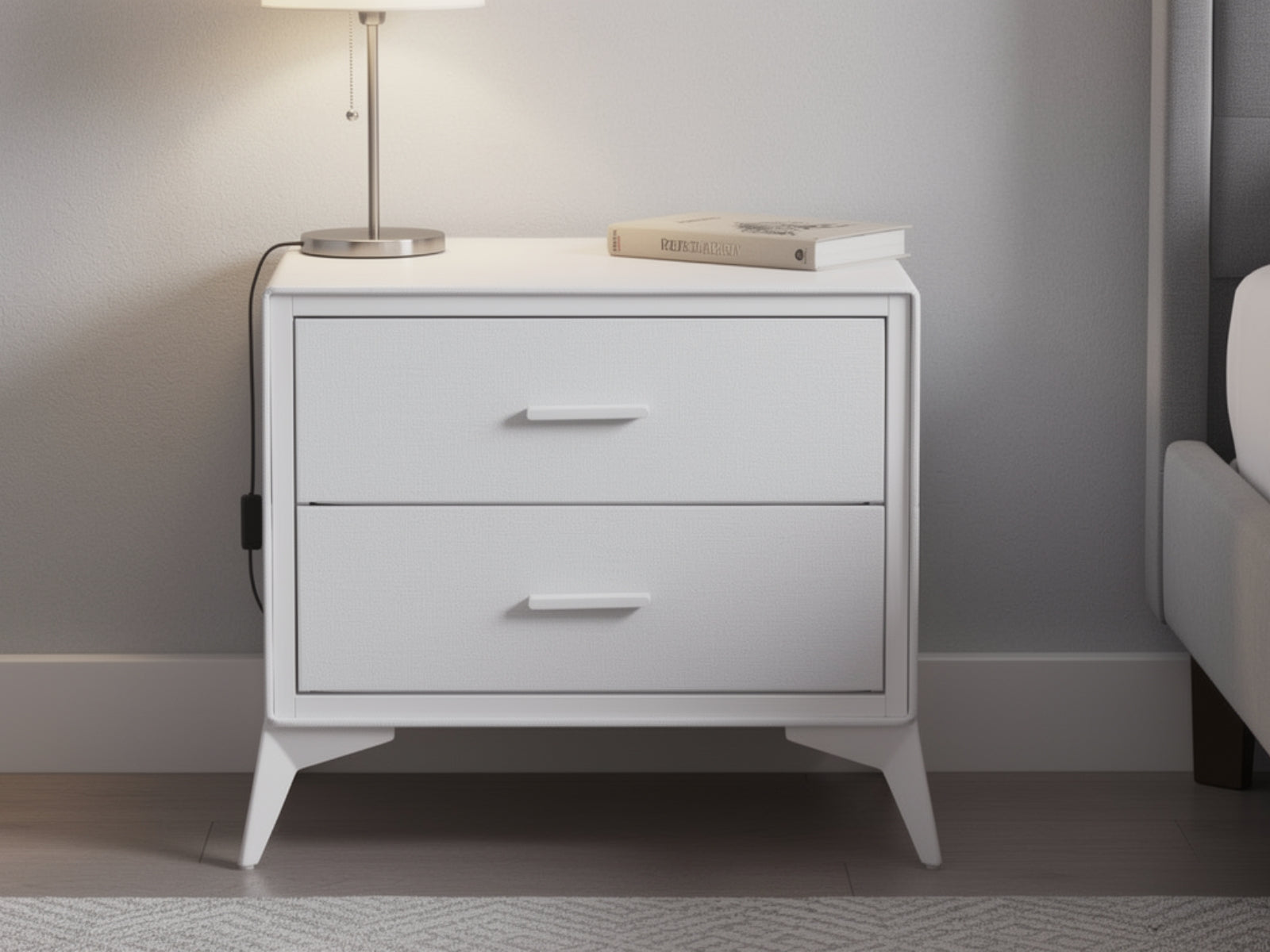 Upgrade your bedroom with elegant faux linen furniture from the Delani Collection. As a part of the collection, this Delani Bedside Table features a sturdy metal frame wrapped in soft-touch faux linen, bringing a refined look to any space. The 2 non-woven drawers each hold up to 5 kg—perfect for storing books, electronics, and essentials. Sleek aluminium alloy handles add a modern finish. The compact size fits neatly beside your bed. Stylish and functional, it’s a smart storage solution for any home.