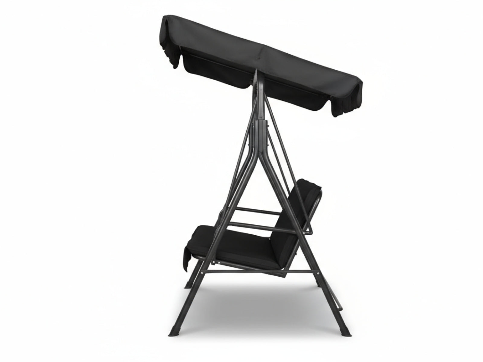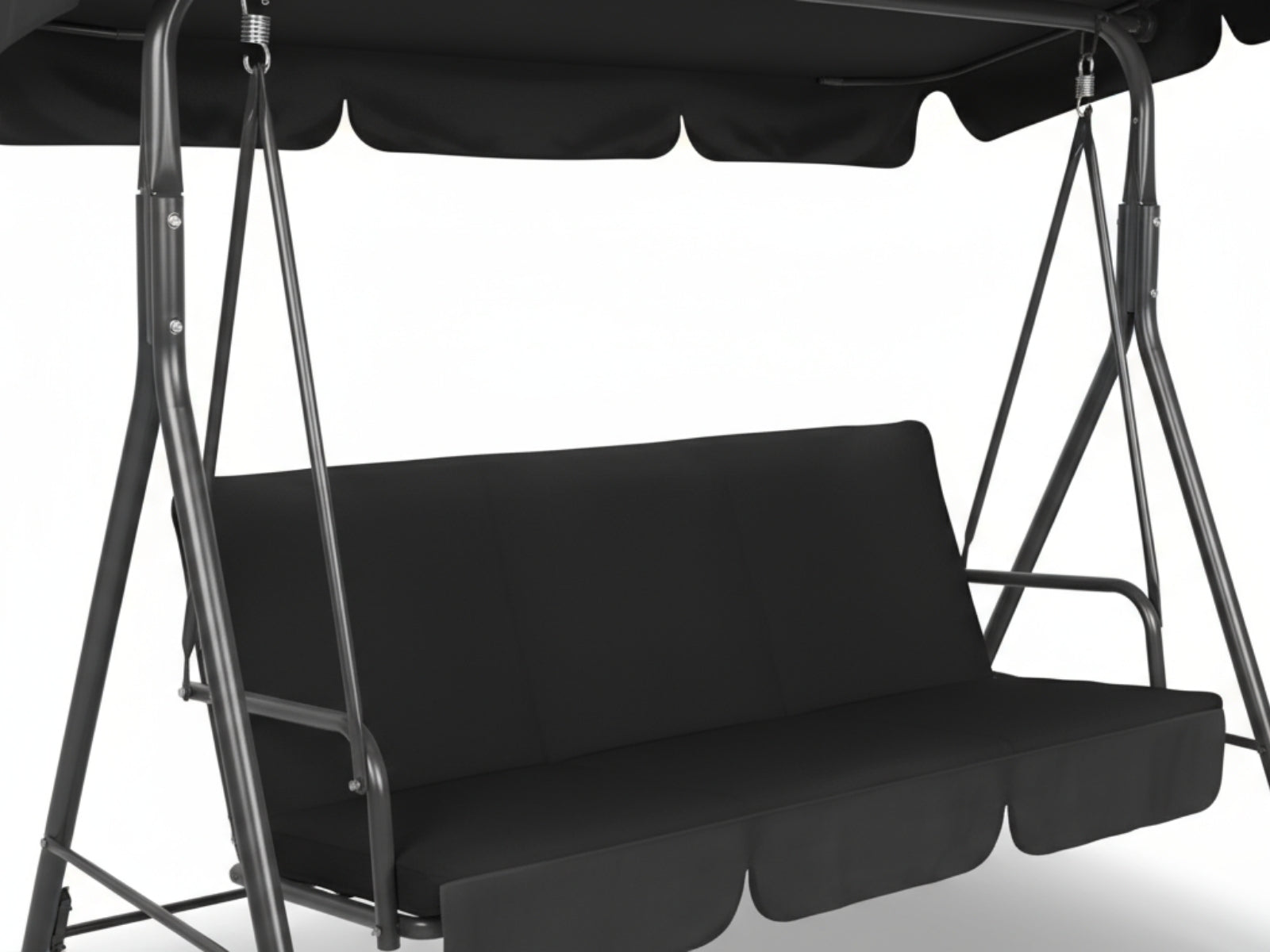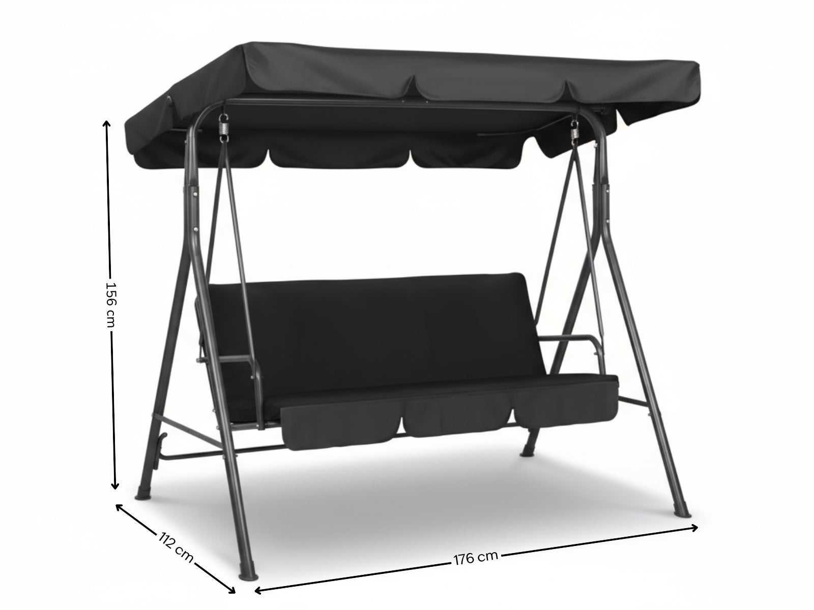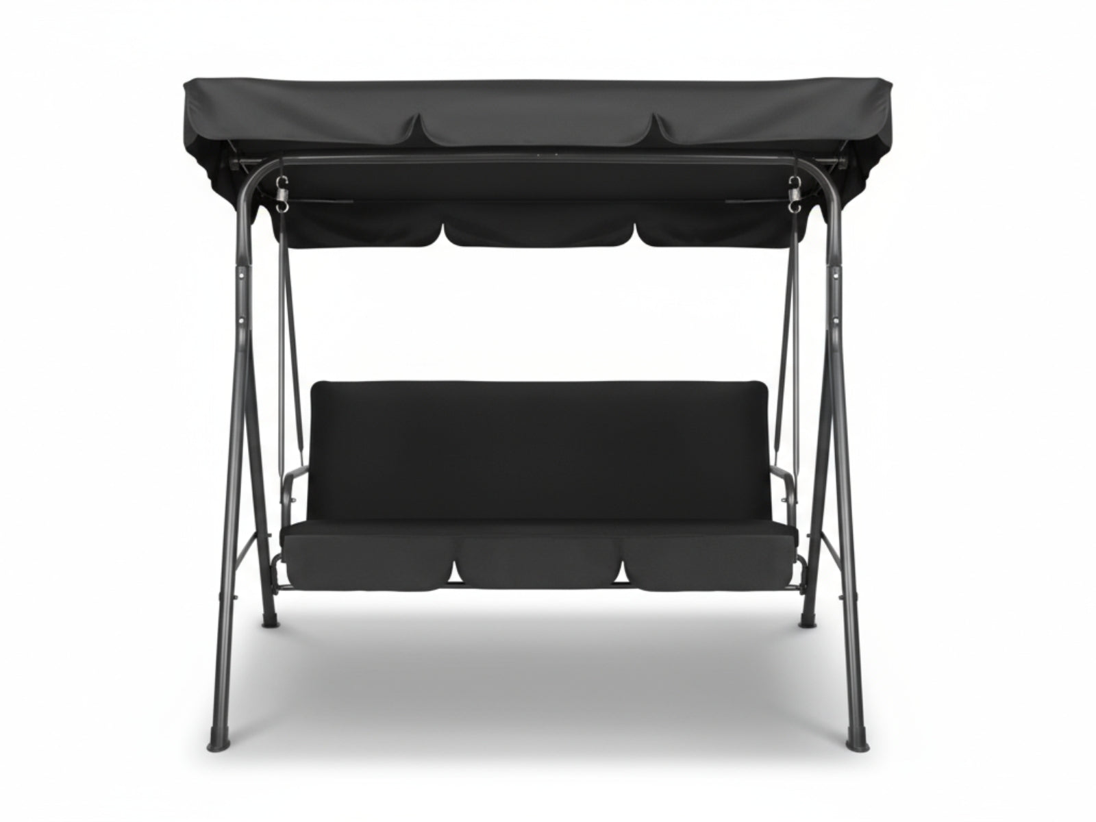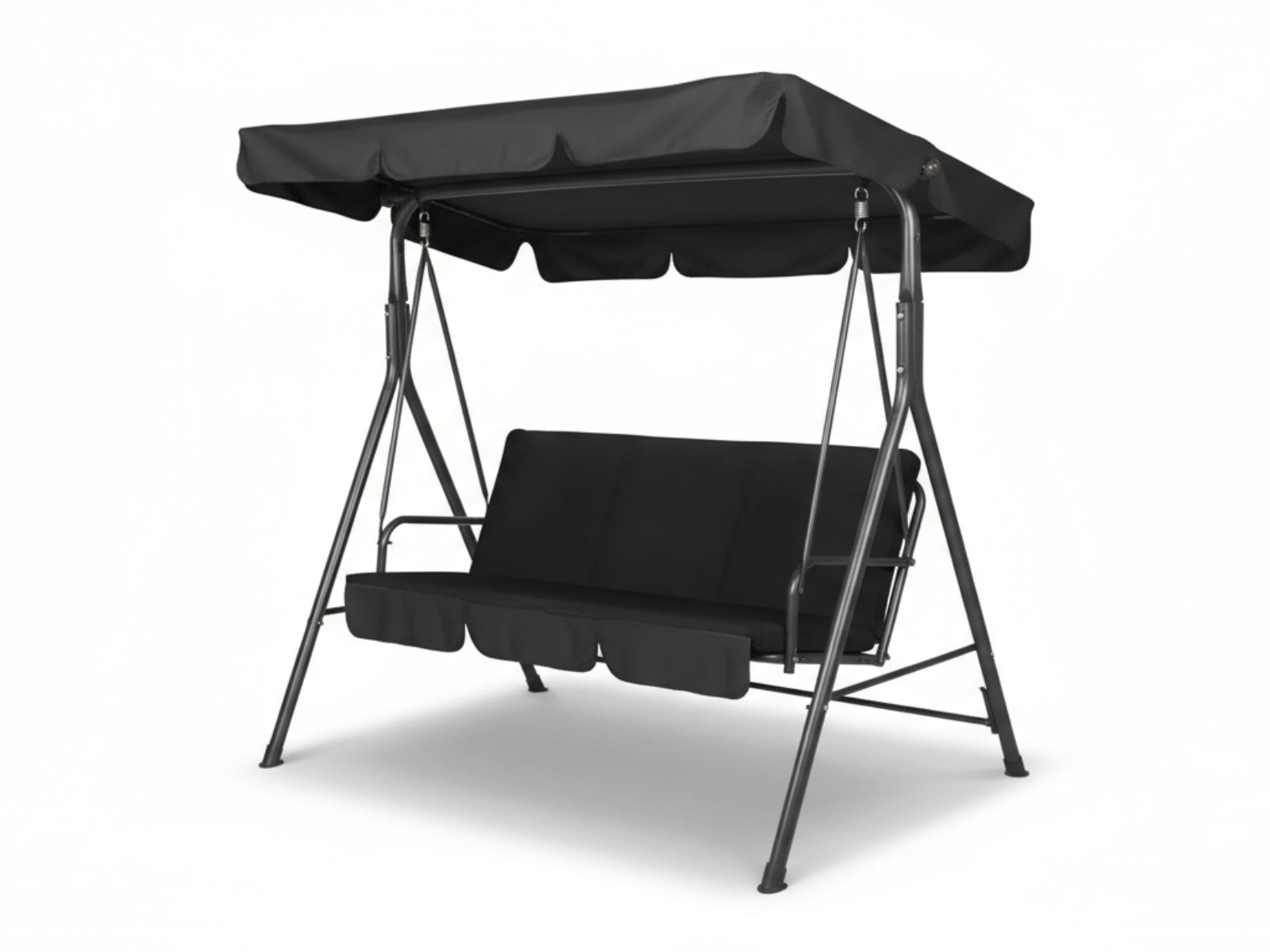 3-Seater Swing Chair | Black | Adjustable Canopy with Waterproof Cushions