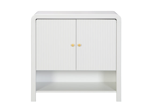 Storage Cabinet | White Finish | Semi Open Shelf with Fluted Panel Design