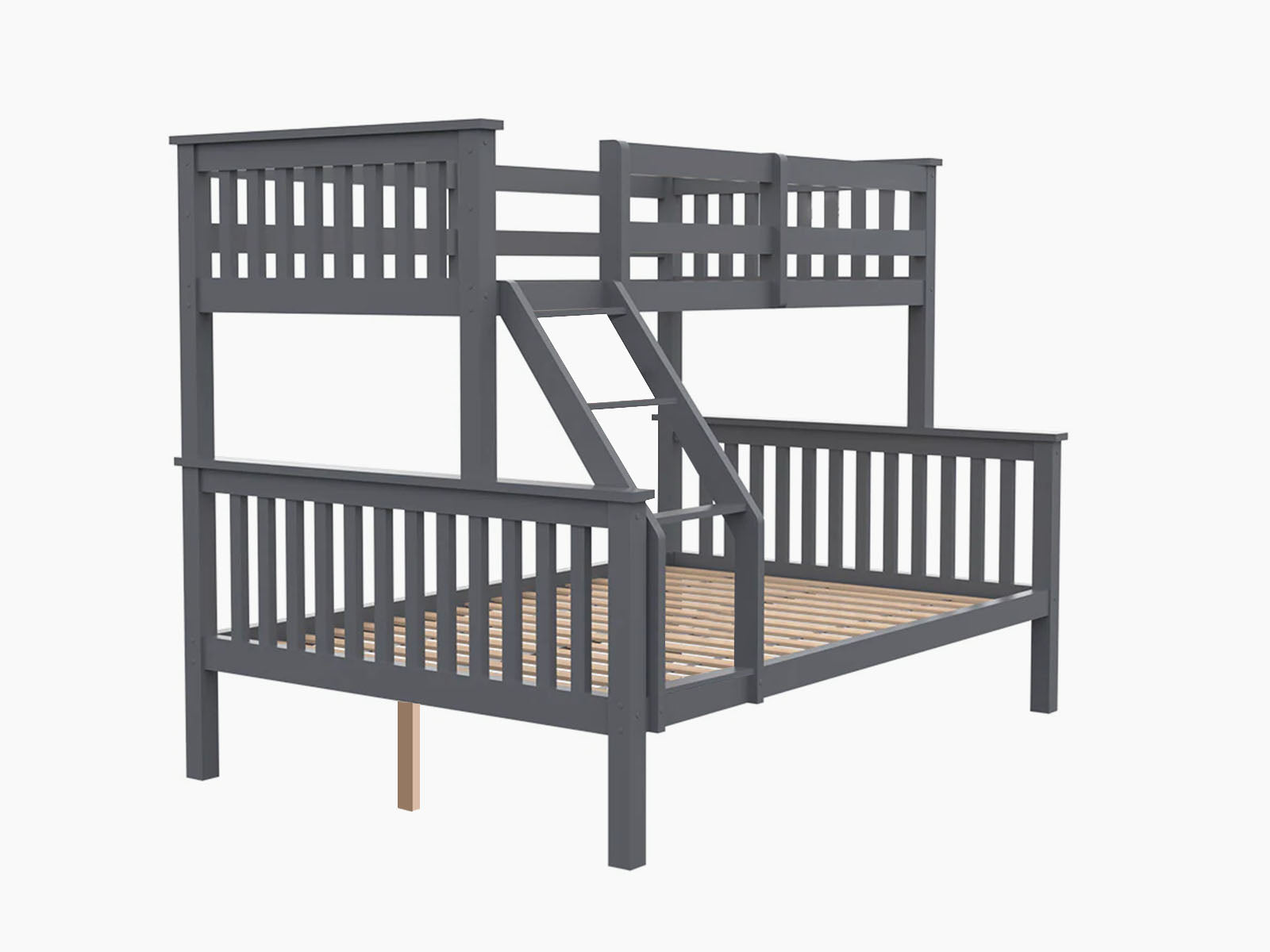 Versatility is the key to longevity. This Enkel Triple Bunk Bed allows you to keep up with the growing needs of your family. It starts as a bunk bed with a double bed on the bottom and a single bed on top. Made from solid pine wood, your kids will always feel safe and secure as the design is strong, sturdy, and durable.