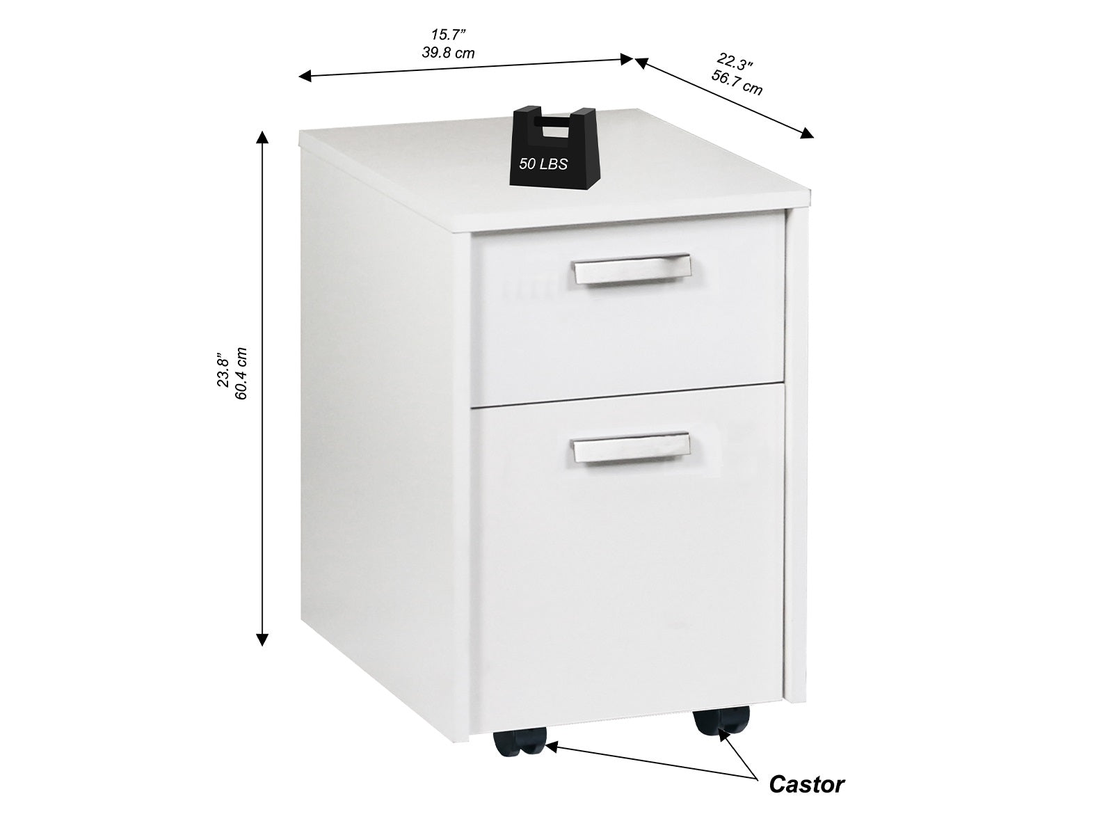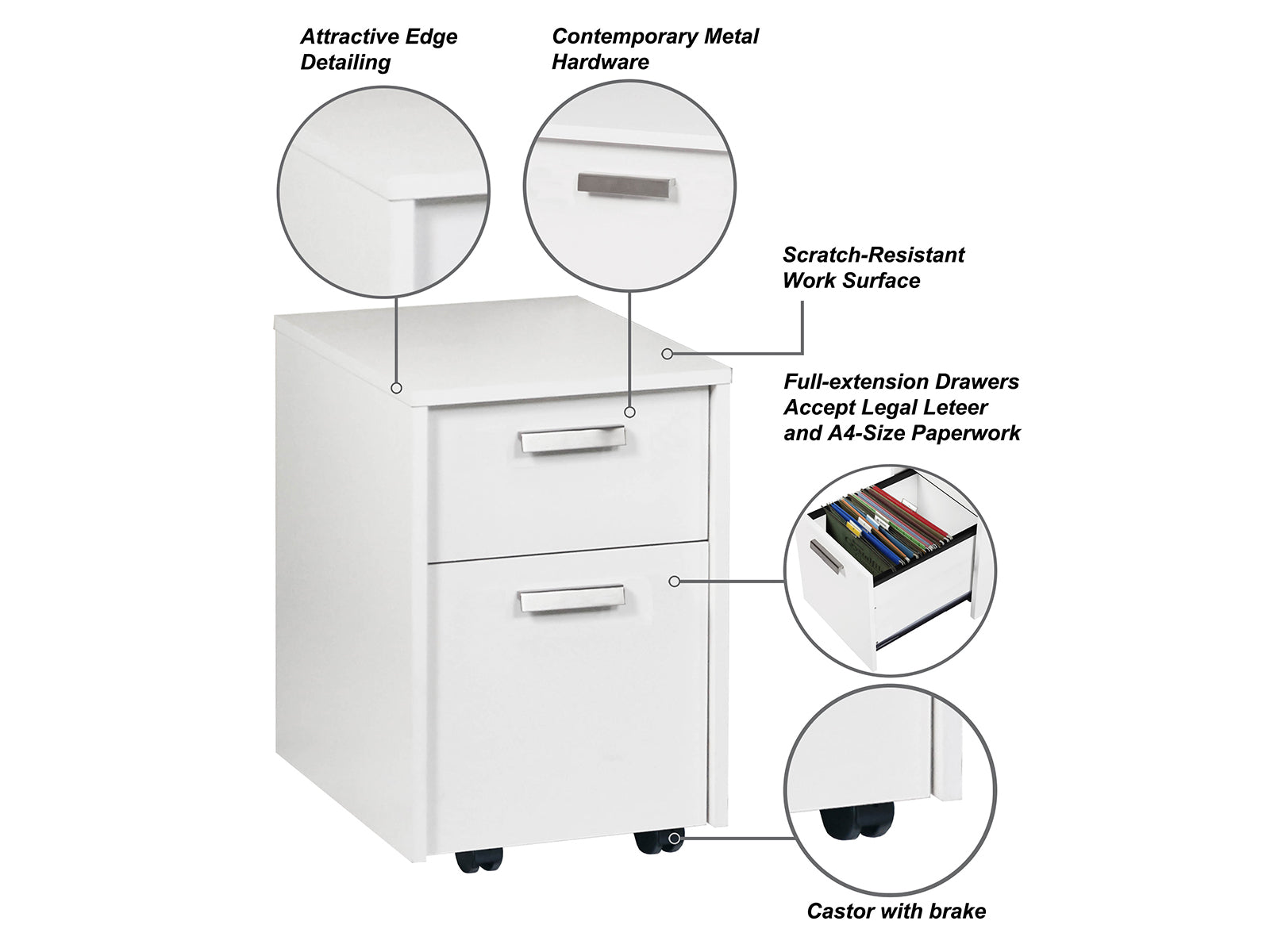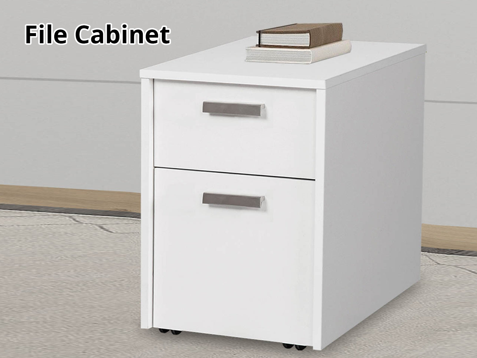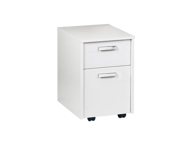 Keep your workspace organized with this mobile vertical filing cabinet. It has two drawers for files, paperwork, and office supplies.