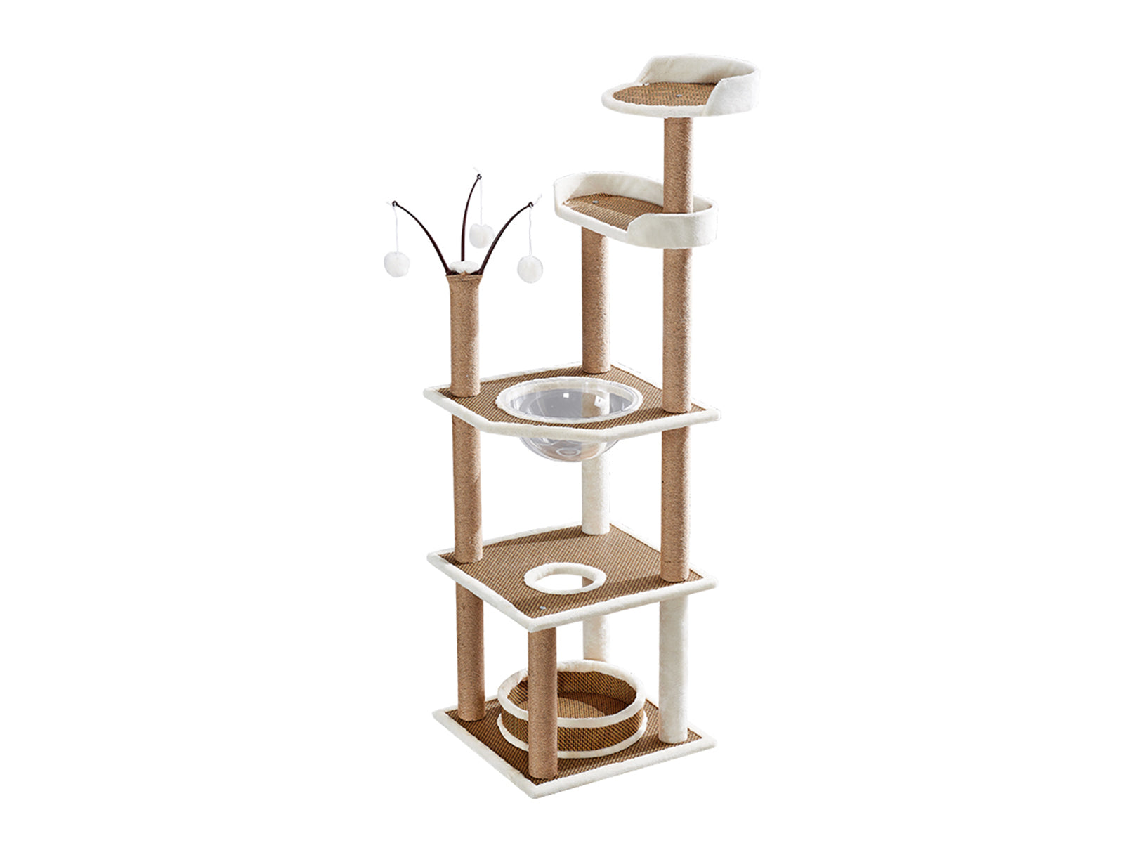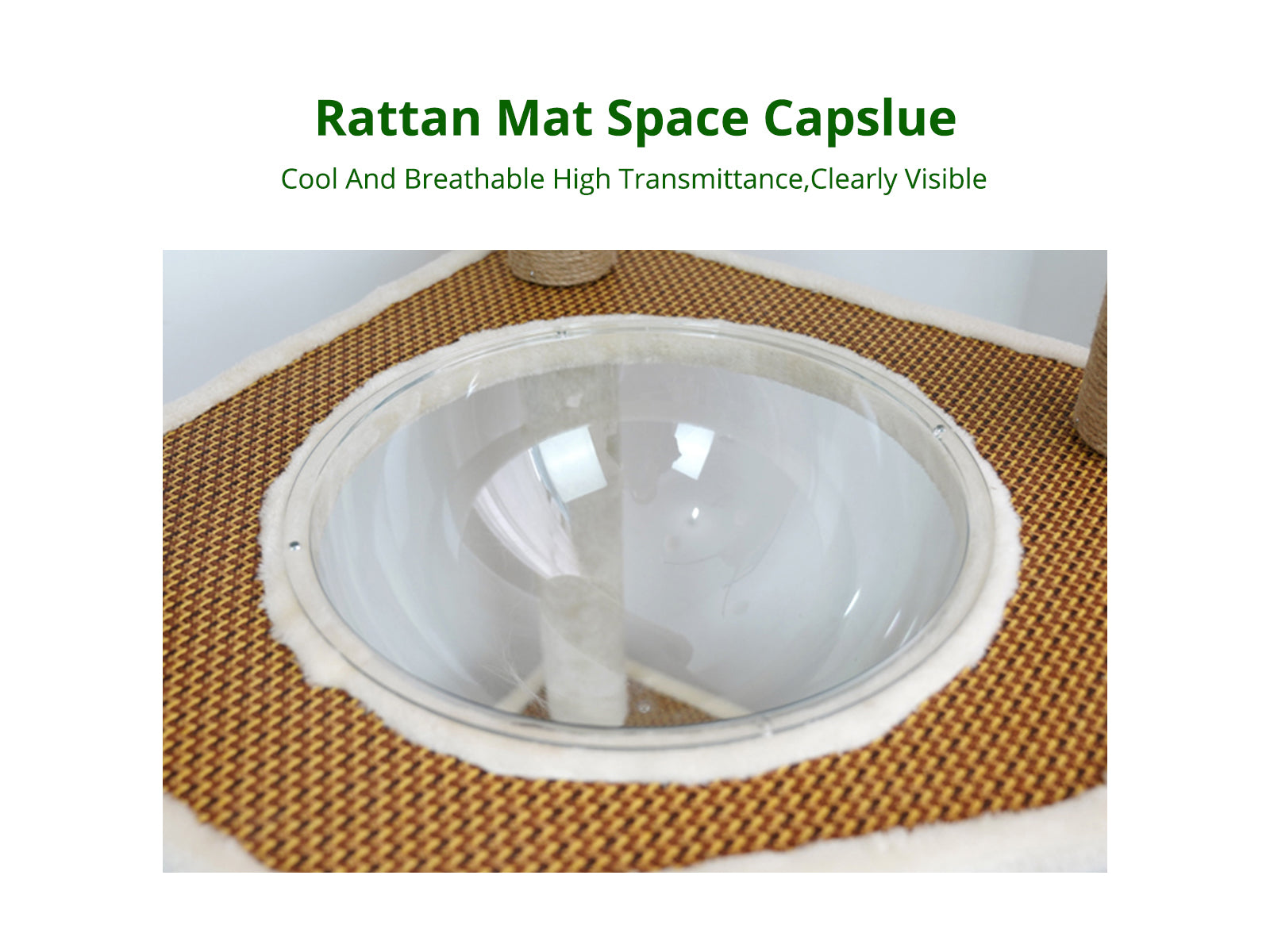 Made of Rattan Mat, this cat tree design features multiple platforms, a big cat house, and even a panoramic capsule! It has eco-friendly sisal posts for them to scratch on instead of damaging your carpet, curtains, and furniture.
