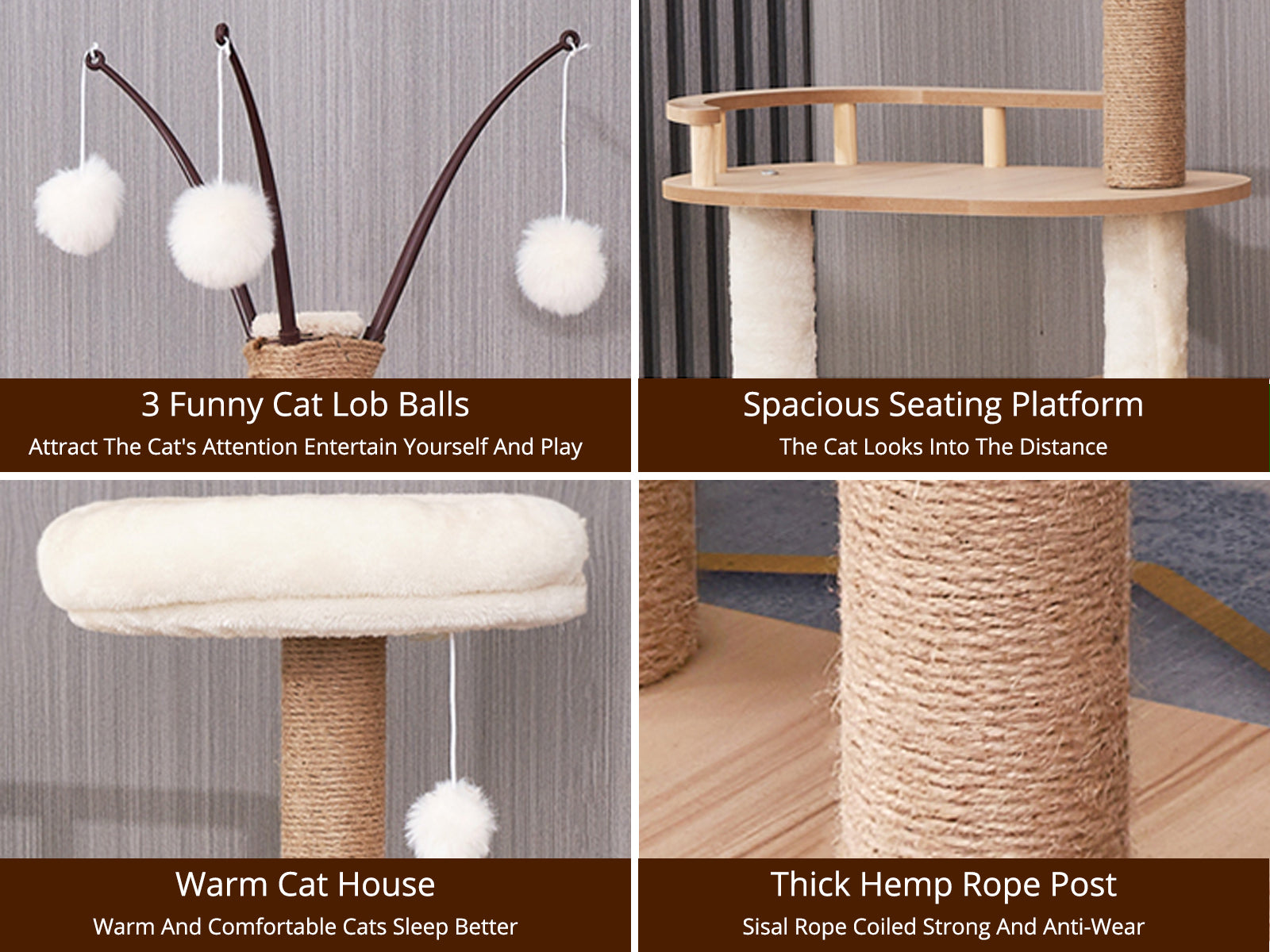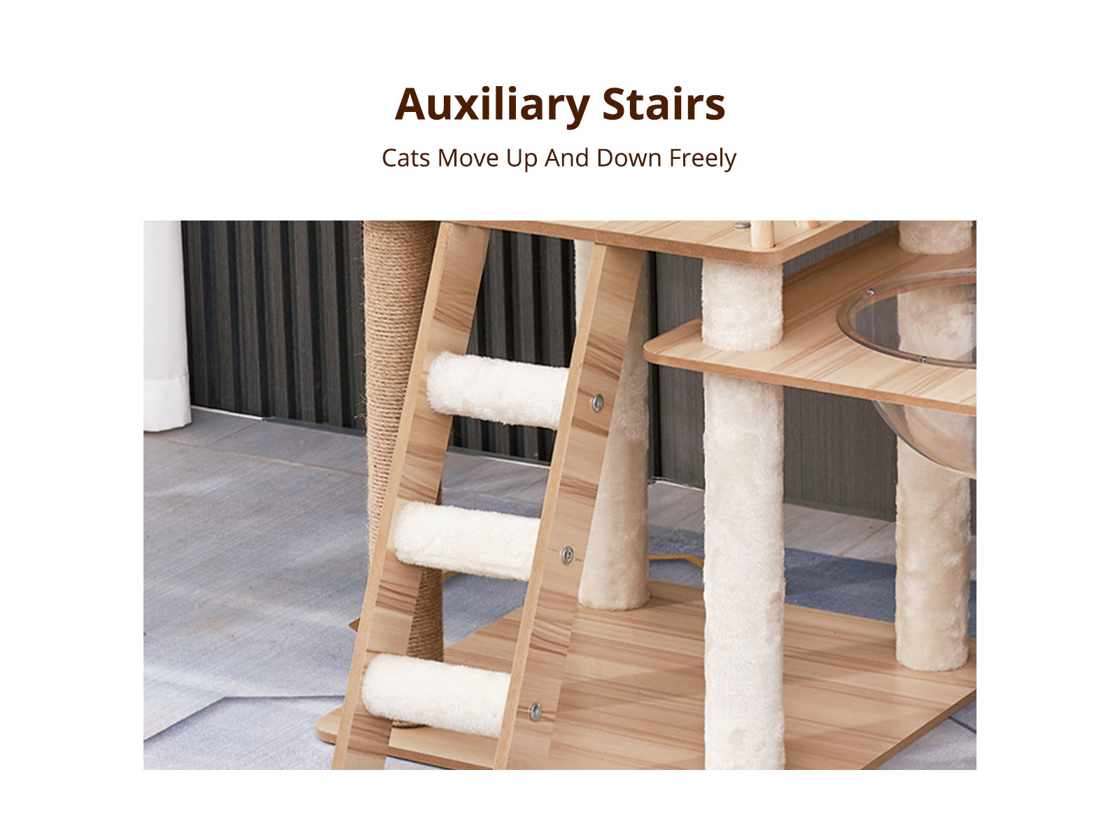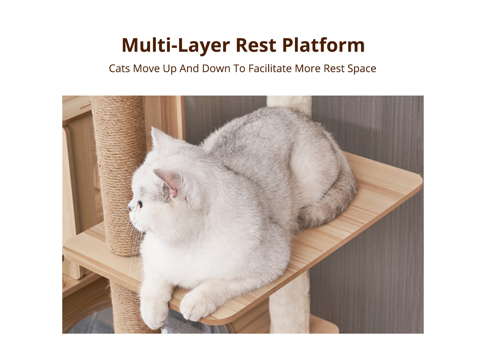 Made of durable wood, this cat tree design features multiple platforms, a big cat house, and even a panoramic capsule! It has eco-friendly sisal posts for them to scratch on instead of damaging your carpet, curtains, and furniture.