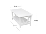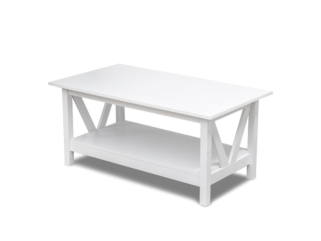 Create a clean, coastal look with the Karra Coffee Table. With crisp white tones and simple lines, this Hamptons-style table adds timeless charm to your space. The elegant V-shaped side panels offer subtle detail, while the spacious tabletop and bottom shelf give room for daily essentials. Pair with the Karra Console Table, and create a bright and airy interior decoration.