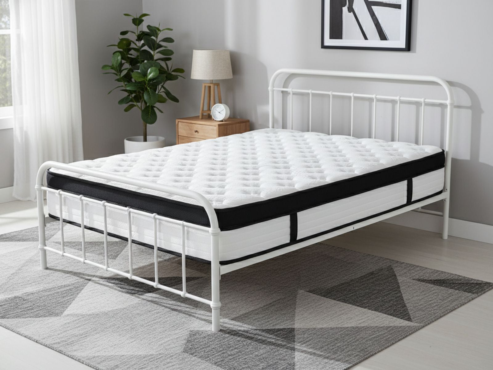 Darcy Metal Bed Frame White & Euro Top Mattress G31 – Queen (Combo)