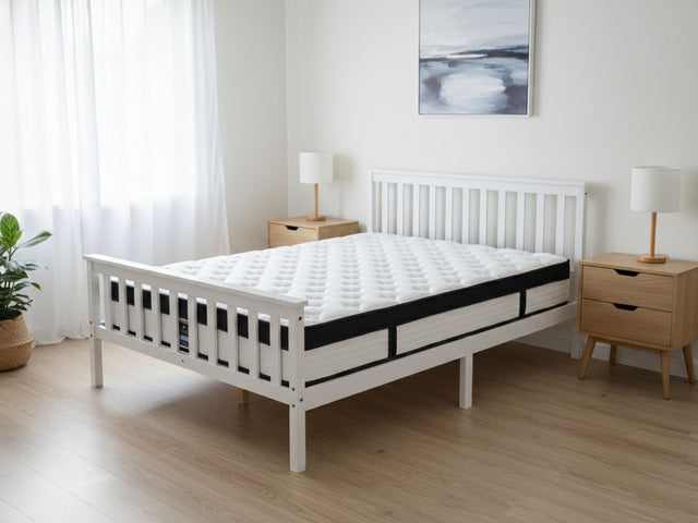 Hampshire Bed Frame White & Euro Top Mattress G31 - Queen (Combo)