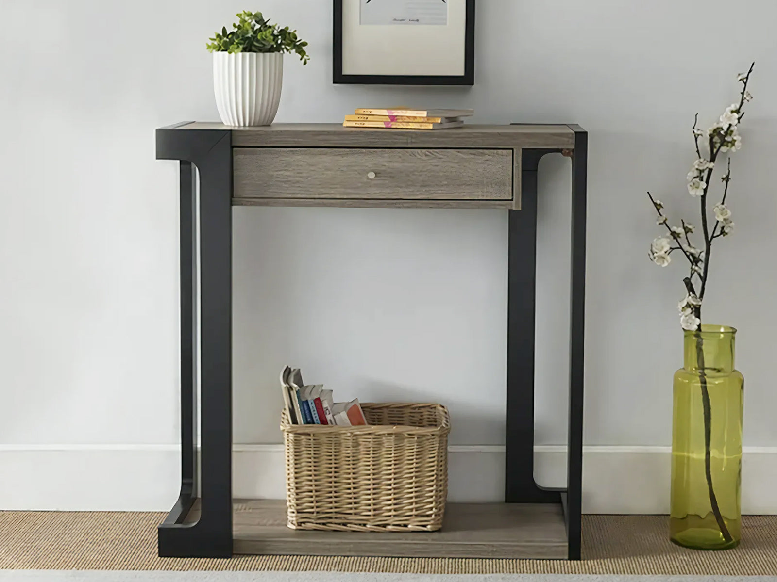 Whether rounding out your living ensemble or lending your entryway a handy surface area for catching keys and other clutter, a console table like this one is a great option for a glamorous touch in your home. The wooden tabletop rests upon metal pedestals, creating visual interest in any room. Crafted from durable metal in a black finish, it features a clean-lined look, that's perfect for your home. A great option for rounding out any space with a stylish and rustic touch.