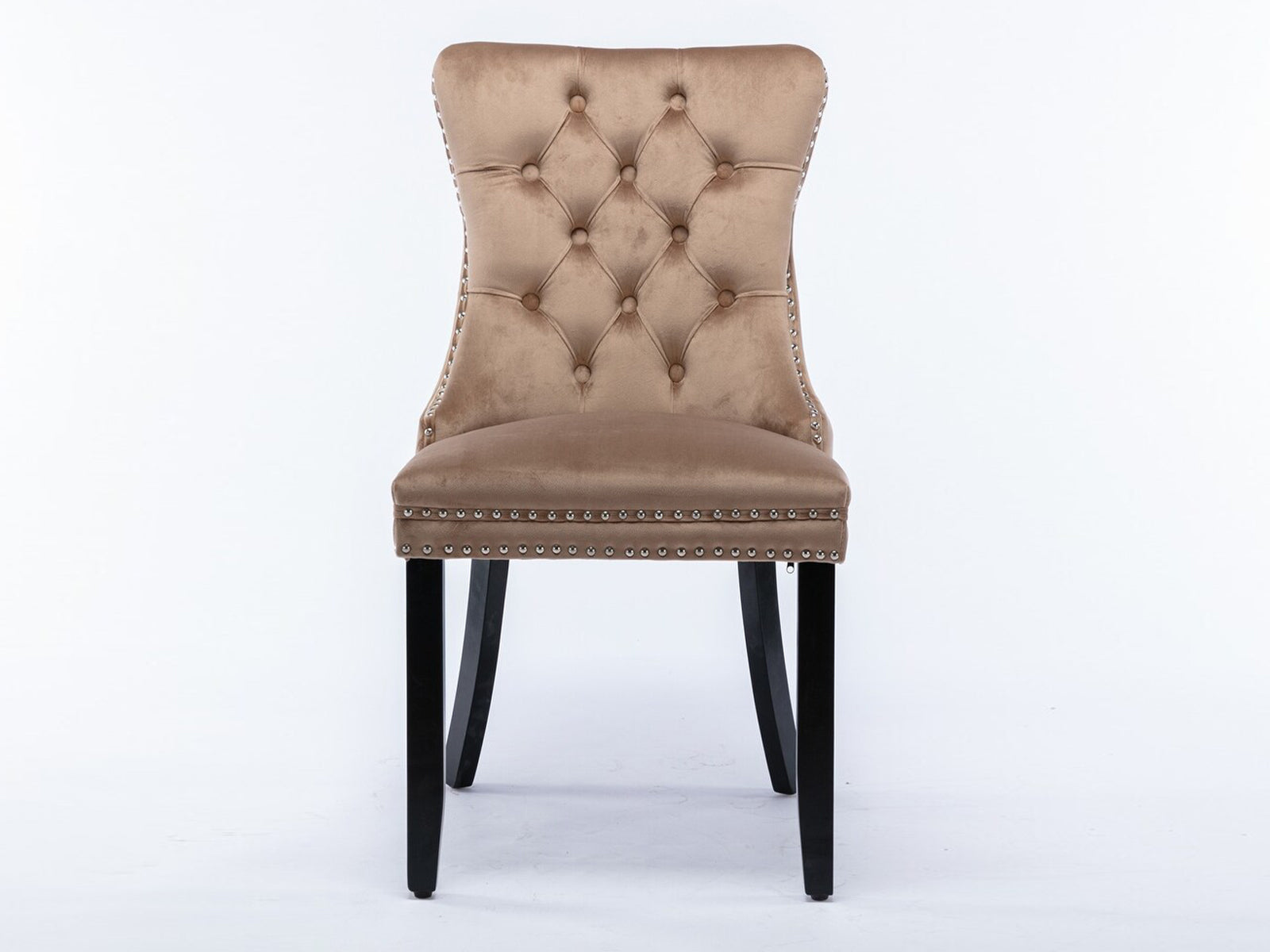 Combining classic style and modern design, the Dining chair 4082 Dining Chairs add elegance and sophistication to your dining area. The velvet back with artful design takes comfortable shape on back, nailhead decorative trim completes the design with a dash of distinction, this modern and comfortable dining chair is upholstered in plush thickened velvet with high density foam and extremely strong support, it could totally let you enjoy your leisure time.