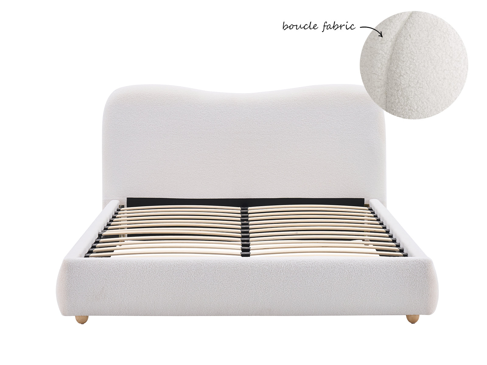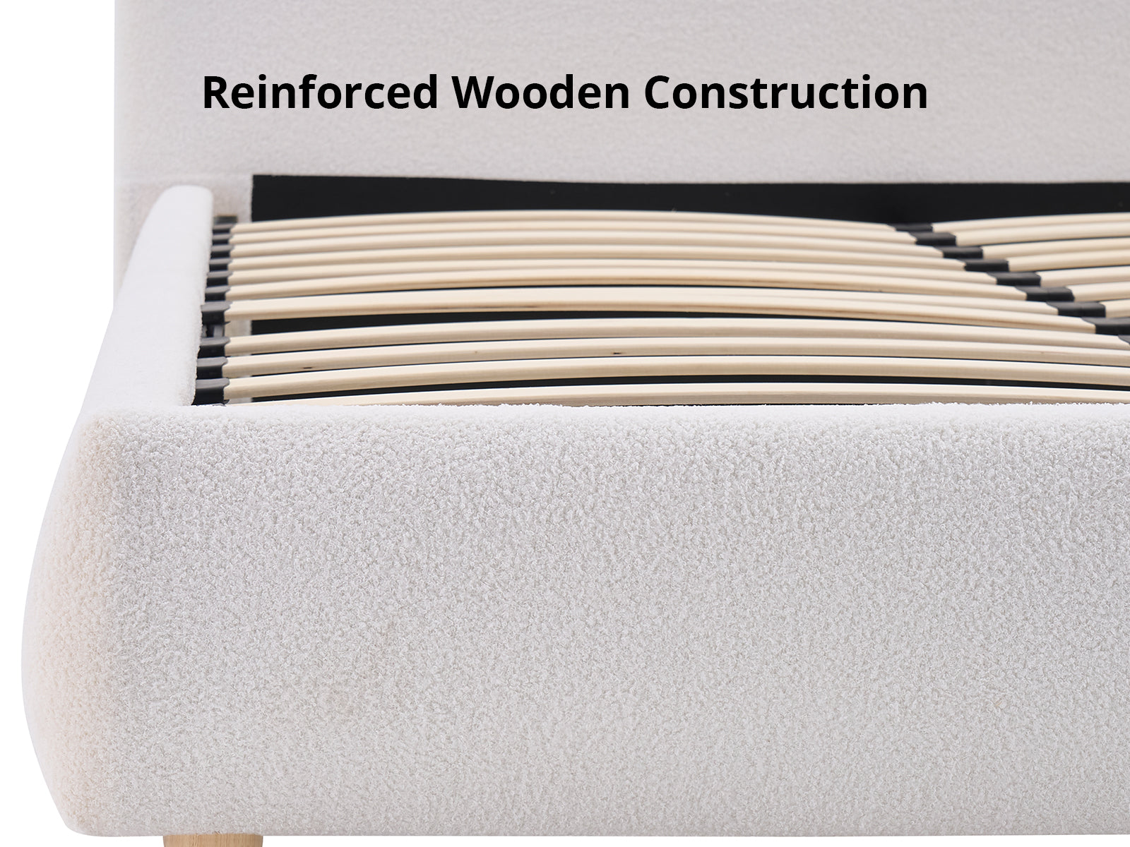 Double Bed Frame | White Bouclé Upholstery | Heavy-Duty Construction