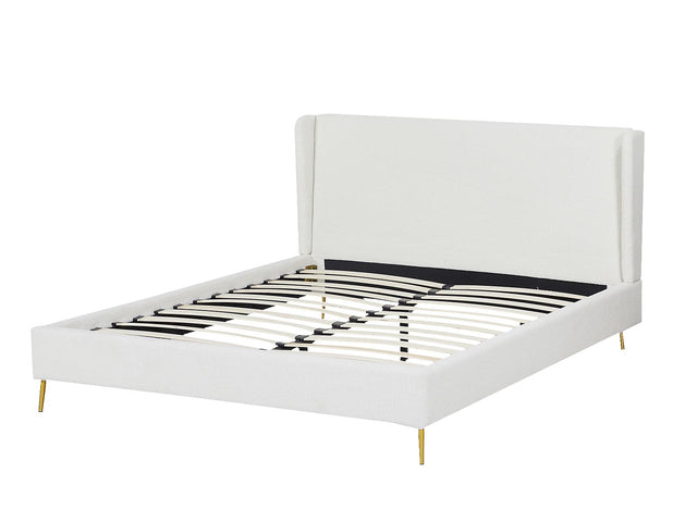 Double Bed Frame | White Bouclé Upholstery | Heavy-Duty Construction