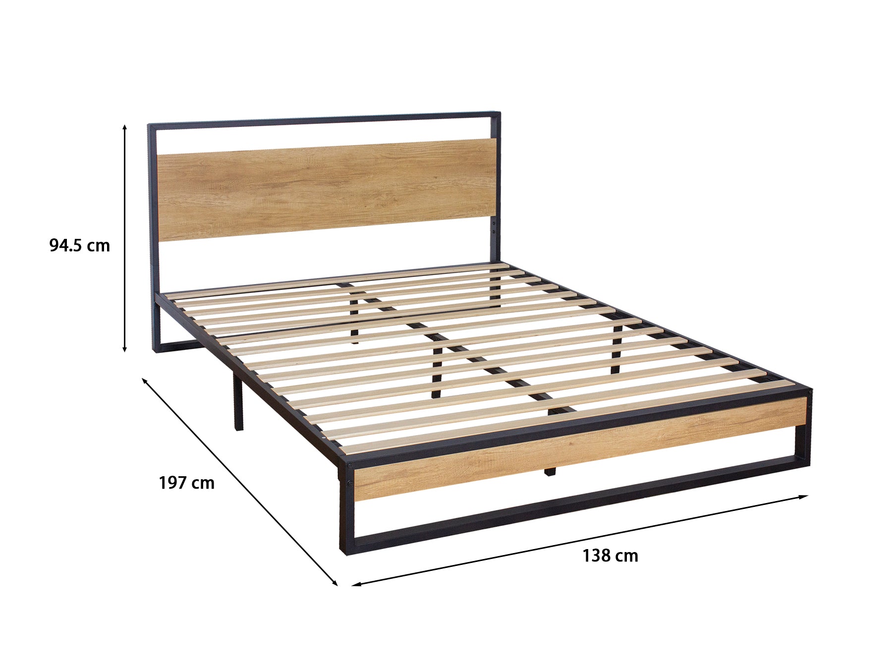 Metal Bed Frame | Black and Oak | Vintage Style & Strong Support