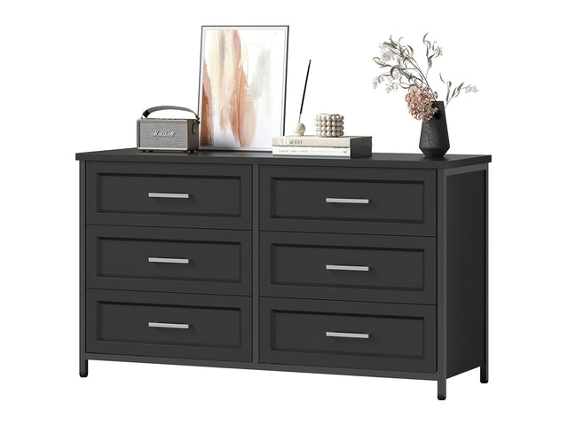 Chest of 6 Drawers | Black Finish | Spacious Drawers with Solid Metal Frame
