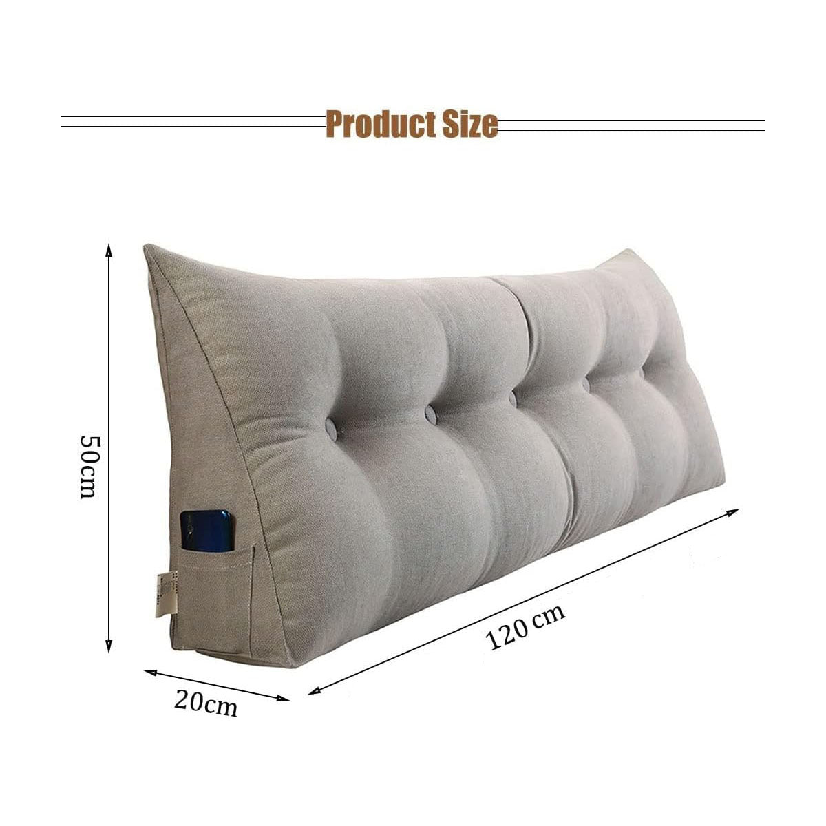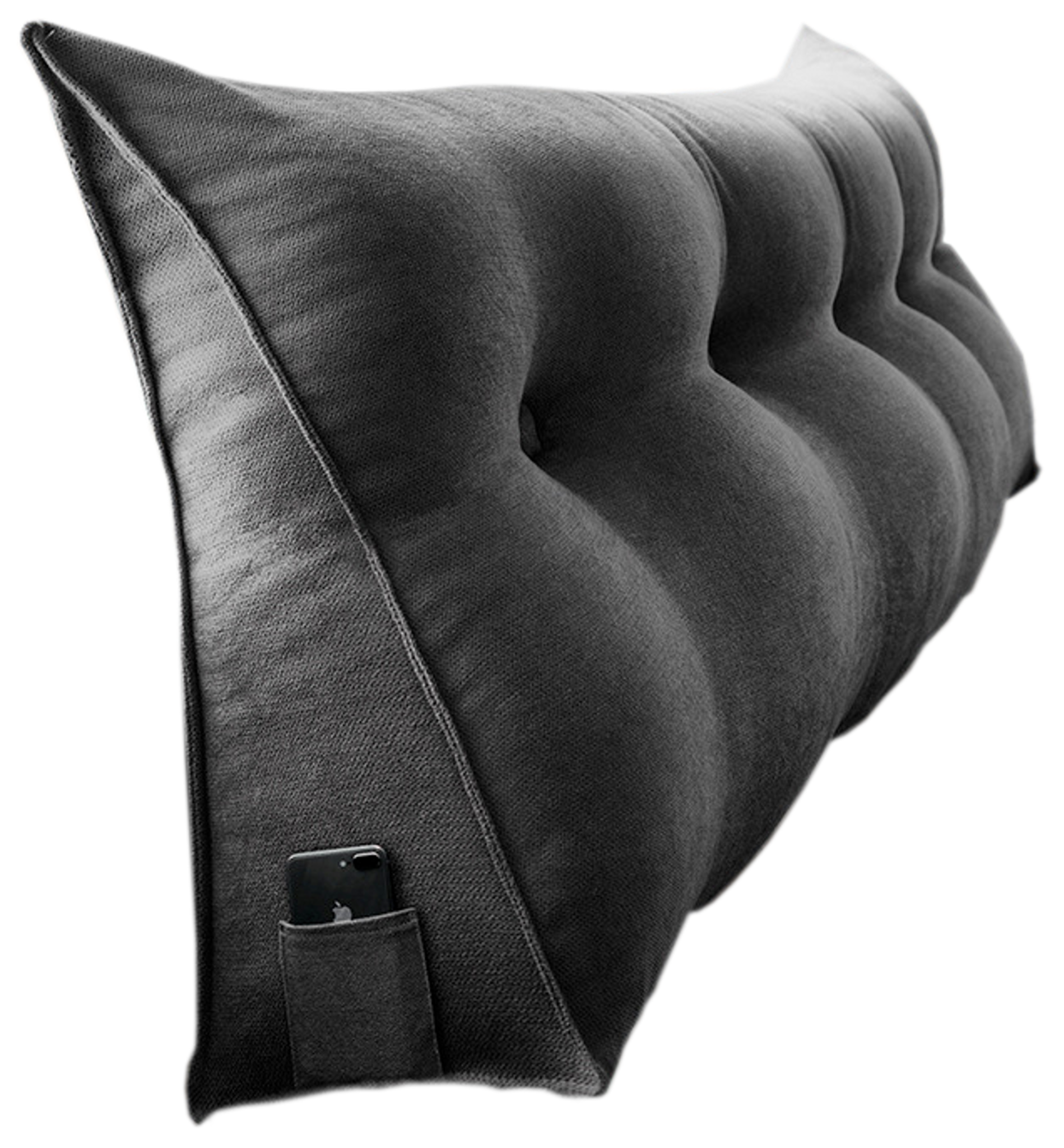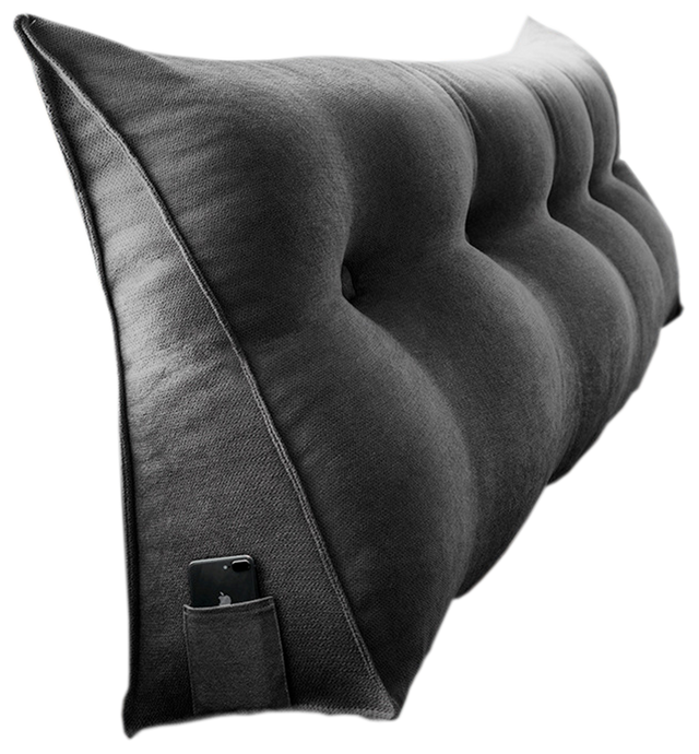 DS BS 120CM Cotton Linen Filled Triangular Wedge Bed Cushion-Black Gray