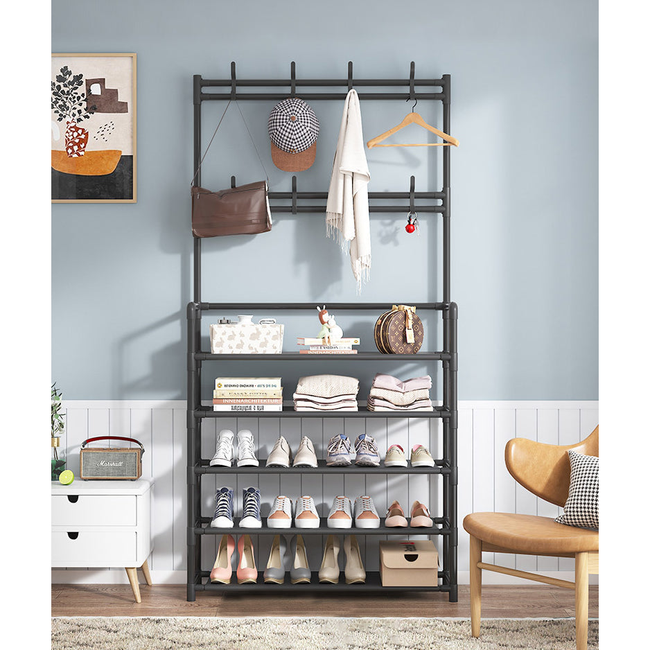 This is the perfect combination of shoe rack, coat rack and other small items storage. No need to mount on the wall, no damage to your wall.
