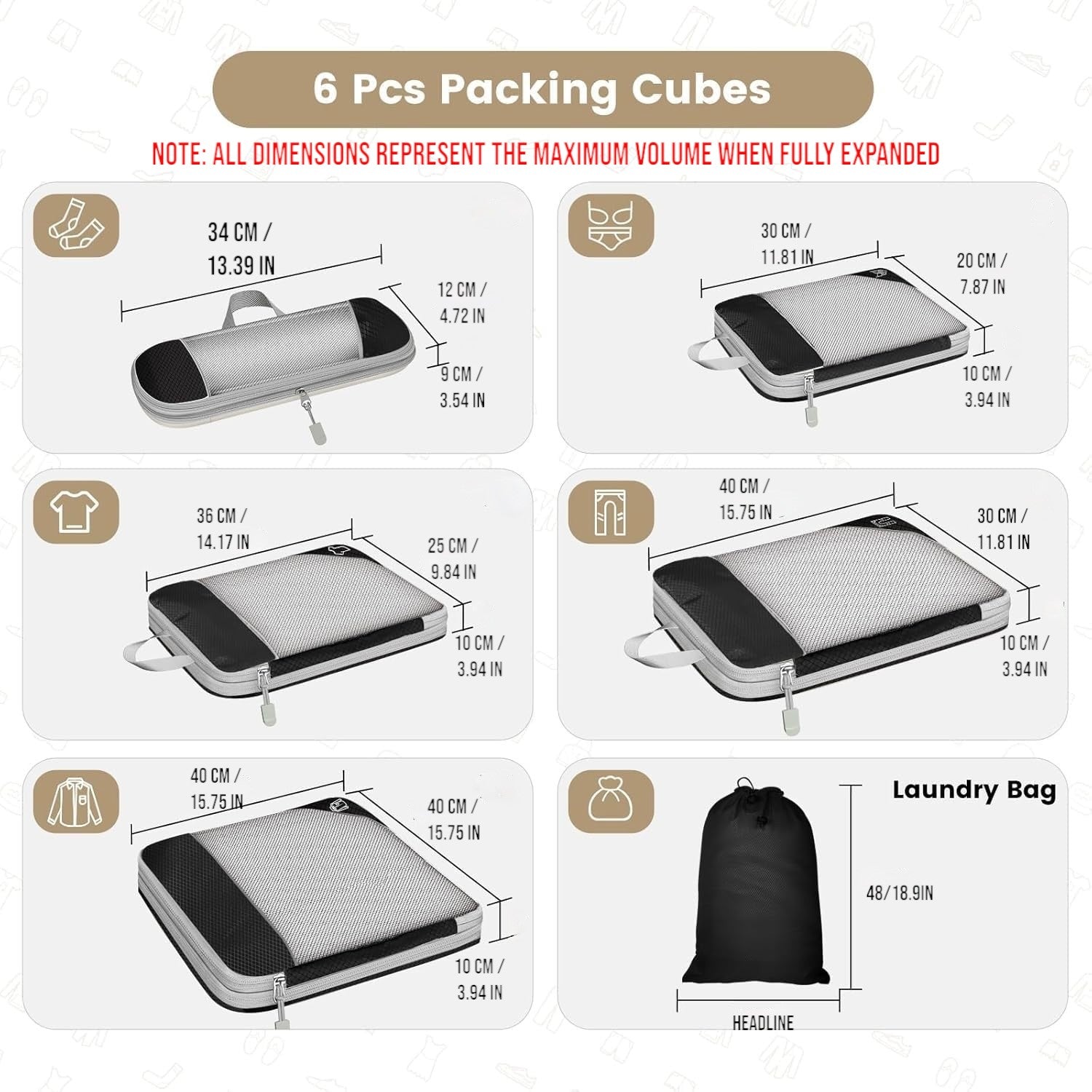6pcs Compression Packing Cubes Travel Luggage Organizer Set – Pink