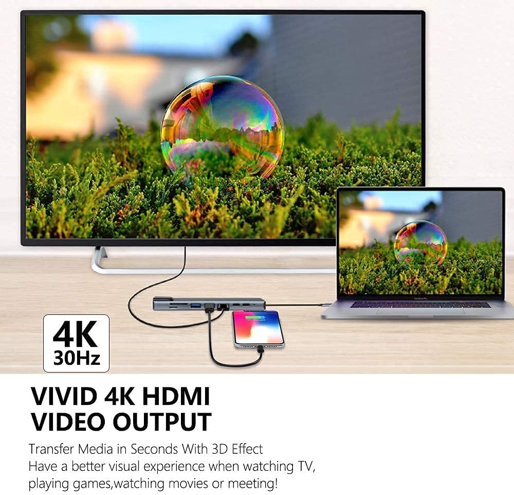 Maximum support for 85W PD fast charge: the 85W PD pass-through charging port keeps your MacBook Pro Air or other compatible USB C laptops Fast charged.