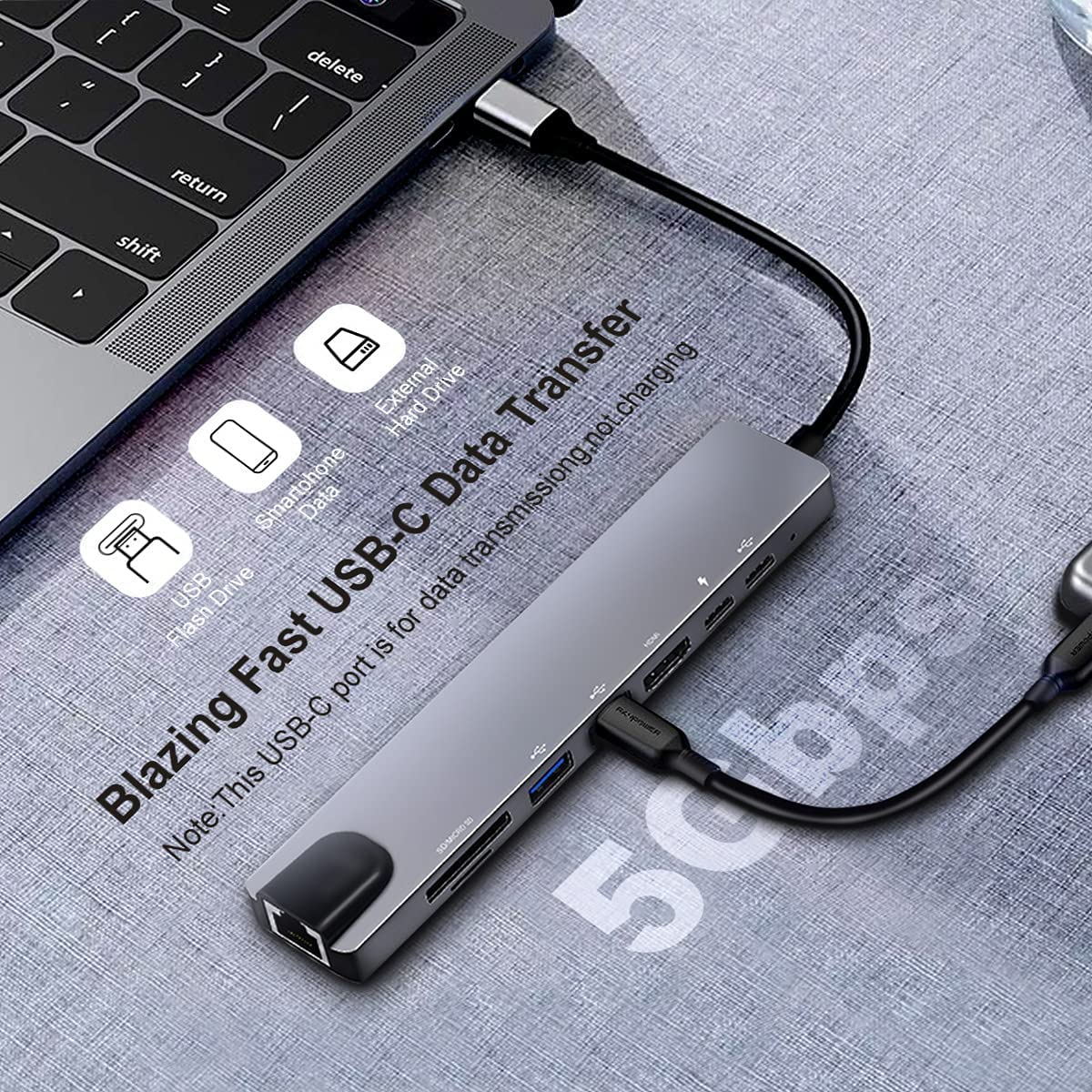 Built with aluminum alloy case, Compatible macbook pro usb adpater,specially accessory designed for MacBook Pro 2021/2020/2019/2018/2017/2016, MacBook Air 2018/2019/2020; Easily fulfill your daily use by extending two USB C port to 4K HDMI, Thunderbolt 3 port(100W PD),USB C female port,2 USB 3.0 ports, SD/TF Card Redder, 1 type C,RJ45 100M Ethernet Port.