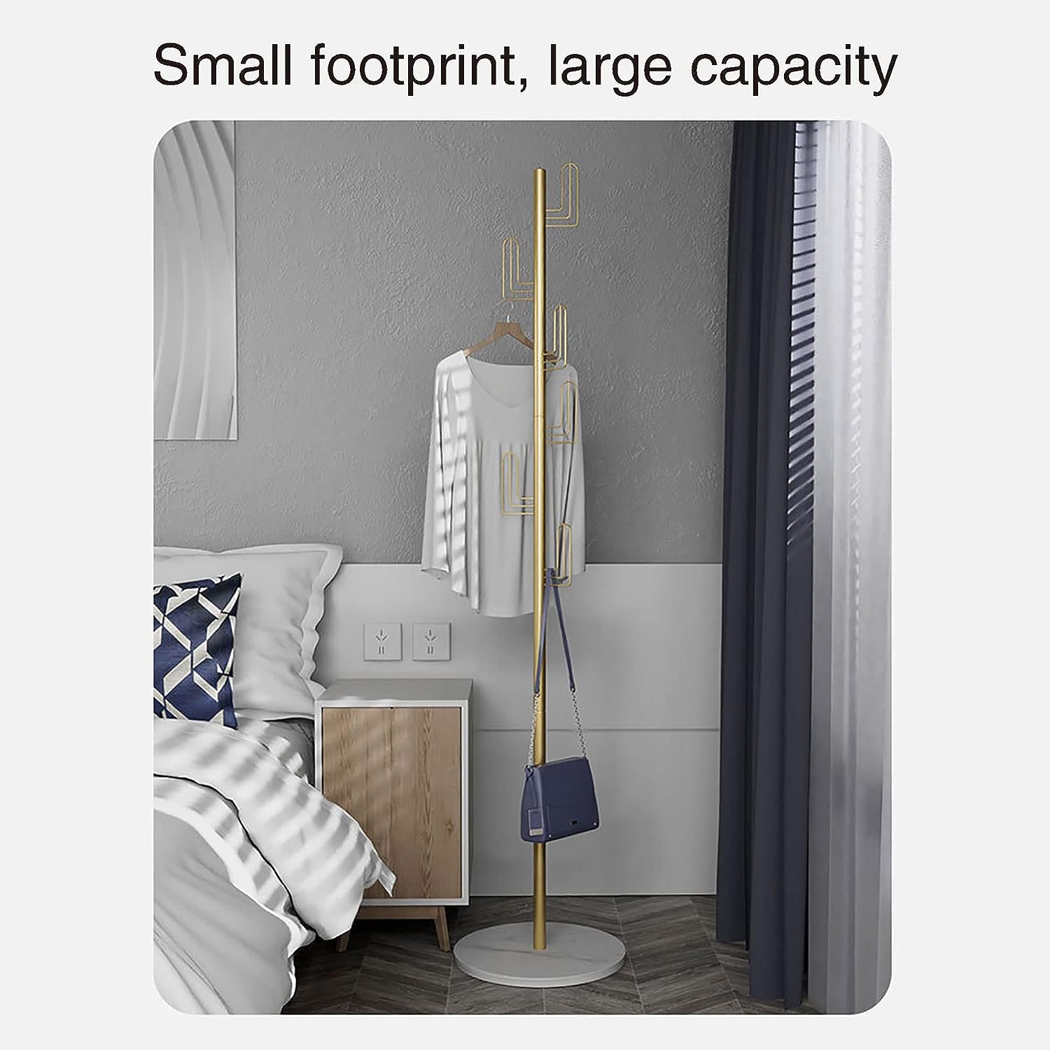 • Robust and Durable: Crafted from high-quality metal and featuring a sintered stone base, this coat rack ensures durability and longevity. The polished, thickened rods and hooks ensure your clothing remains snag-free.