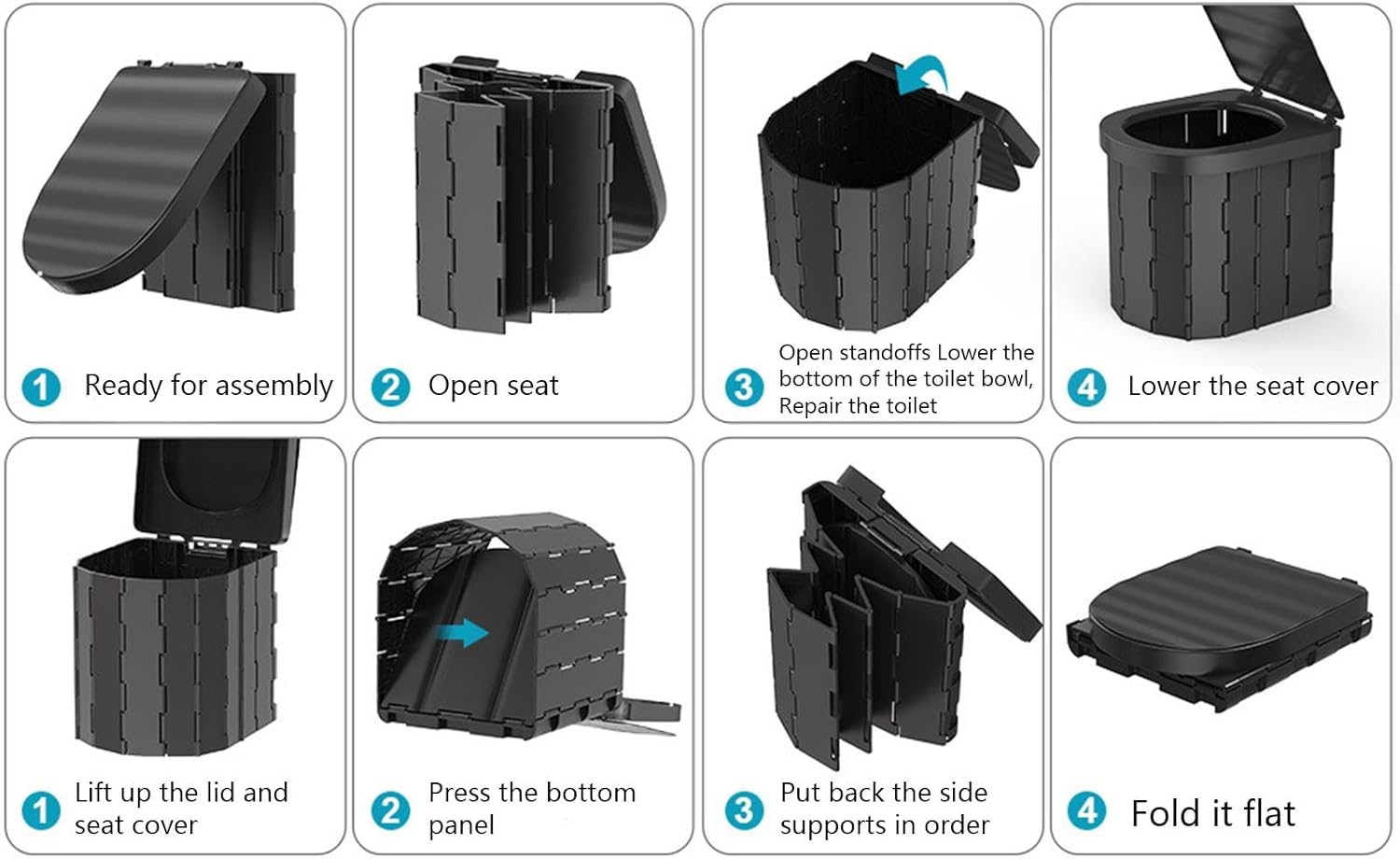 Suitable for adults, elderly, and children, it’s ideal for use during camping, traveling, or any situation without access to a regular toilet.