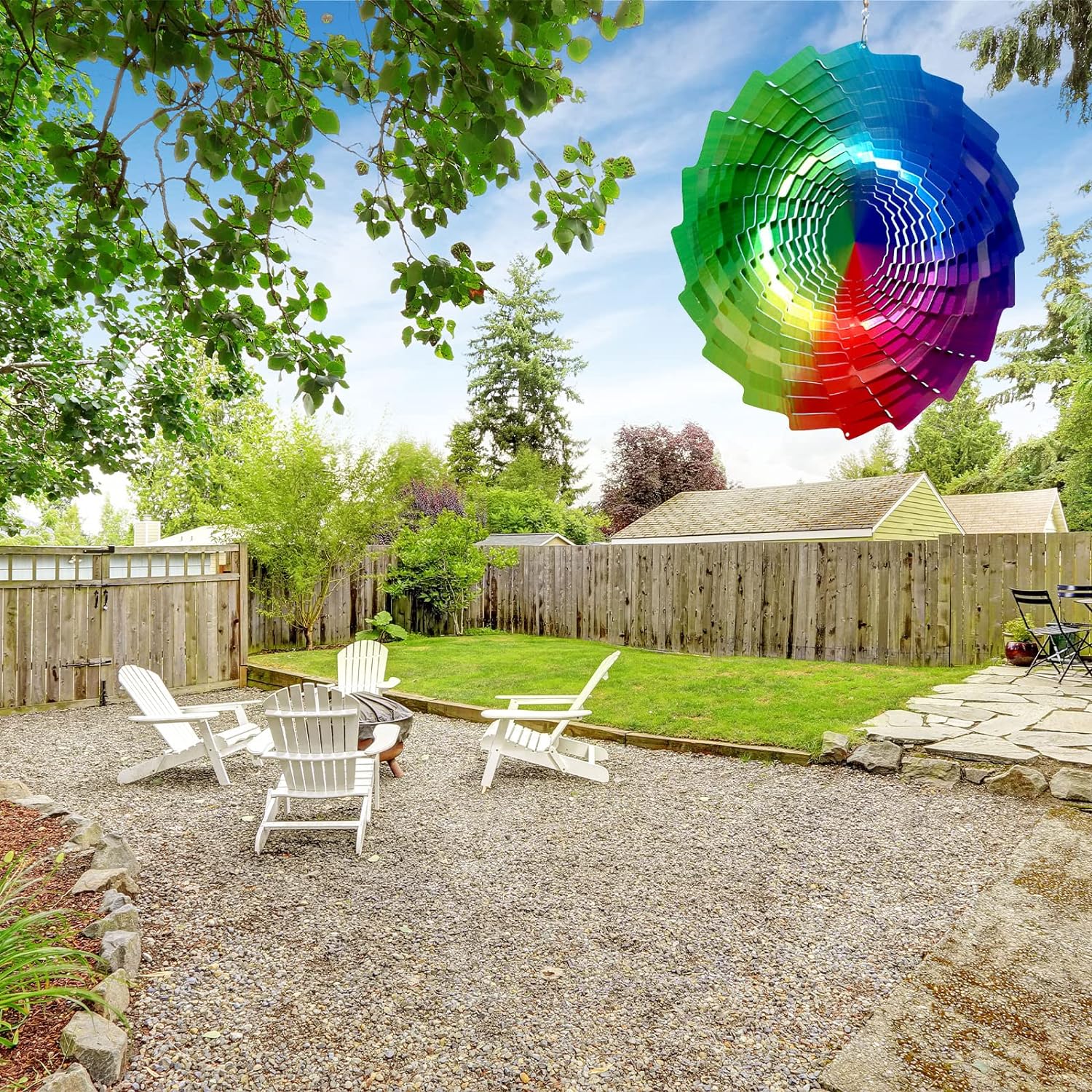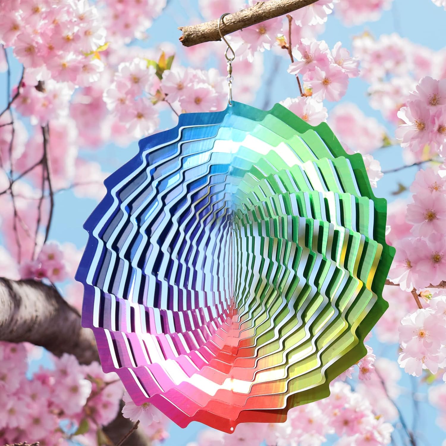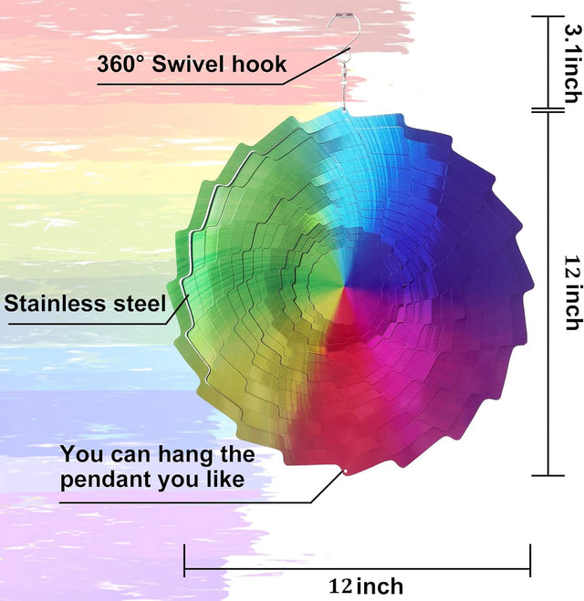 Easy to Assemble: Our rainbow twirler spinner features a 30CM diameter and comes with a swivel hanging hook for easy hanging and placement on a tree, allowing it to spin gently in the breeze. It is ideal for yard art, outdoor, and garden decor as lawn ornaments. The garden wind spinner bends into place easily, enabling you to adjust the angle as desired. Please handle with care to avoid injury.