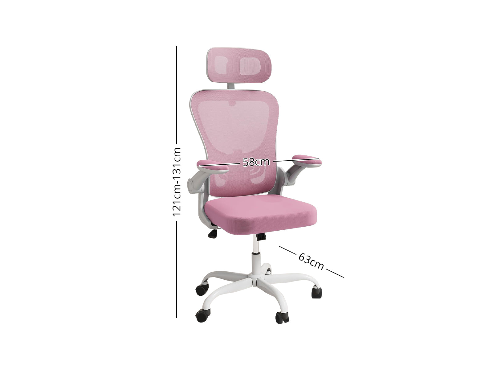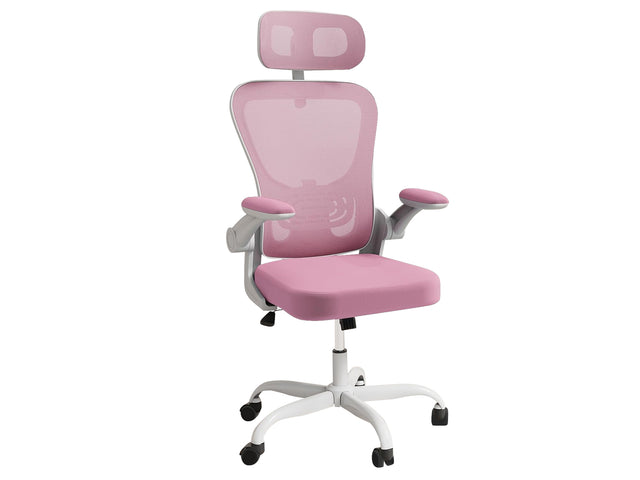 If you spend a lot of time in front of your desk, you'll need such a comfortable and functional office chair. High mesh back supports your entire back, neck and head, at the same time, bringing a cool using experience. A large, cushioned seat relieves fatigue from a long time sitting. Best of all, our desk chair is highly adaptable to your preferences. The seat, lumbar support and headrest can all be adjusted within a certain height range for maximum comfort. Armrests with foam padding are ideal for resting your arms and can be flipped up for space saving. The star base with five nylon castors allows 360° smooth mobility. To add more fun, users can adjust the tilted angle of the backrest to enjoy rocking back and forth. Start a productive but relaxing day from now on!