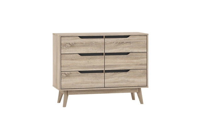 Chest of 6 Drawers | Hana Oak Finish with Tapered Legs | Modern Look Organizer